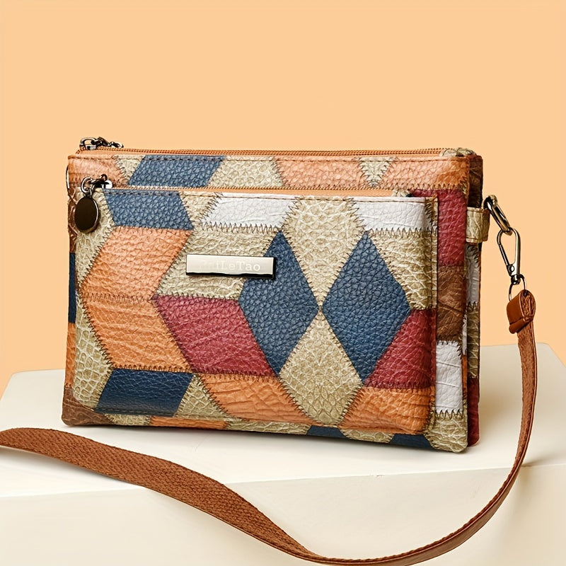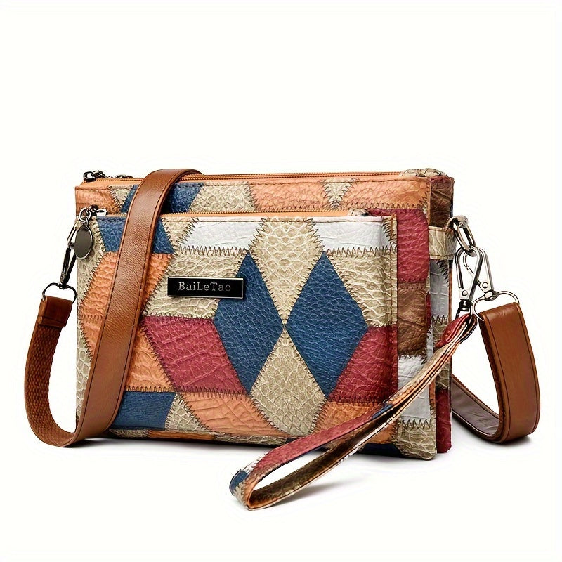 Rhombus Pattern Crossbody Bag, Bohemian Style Shoulder Bag