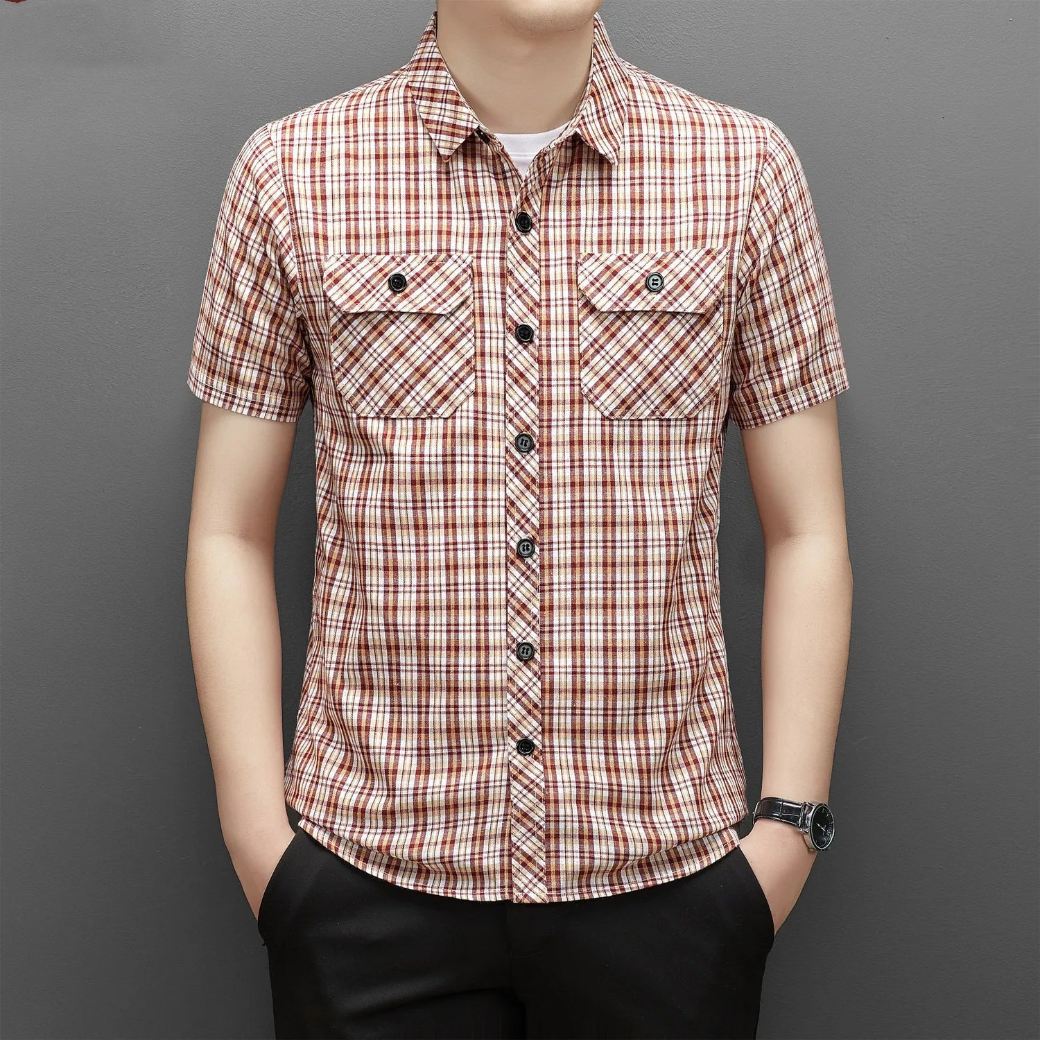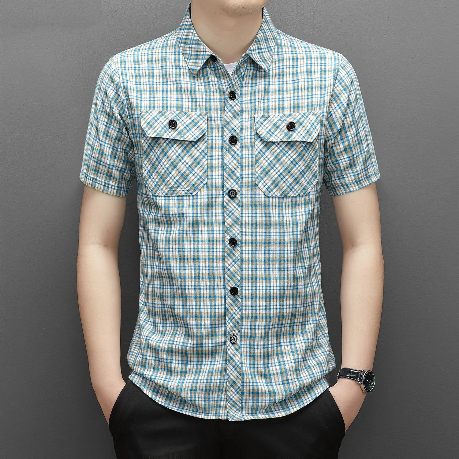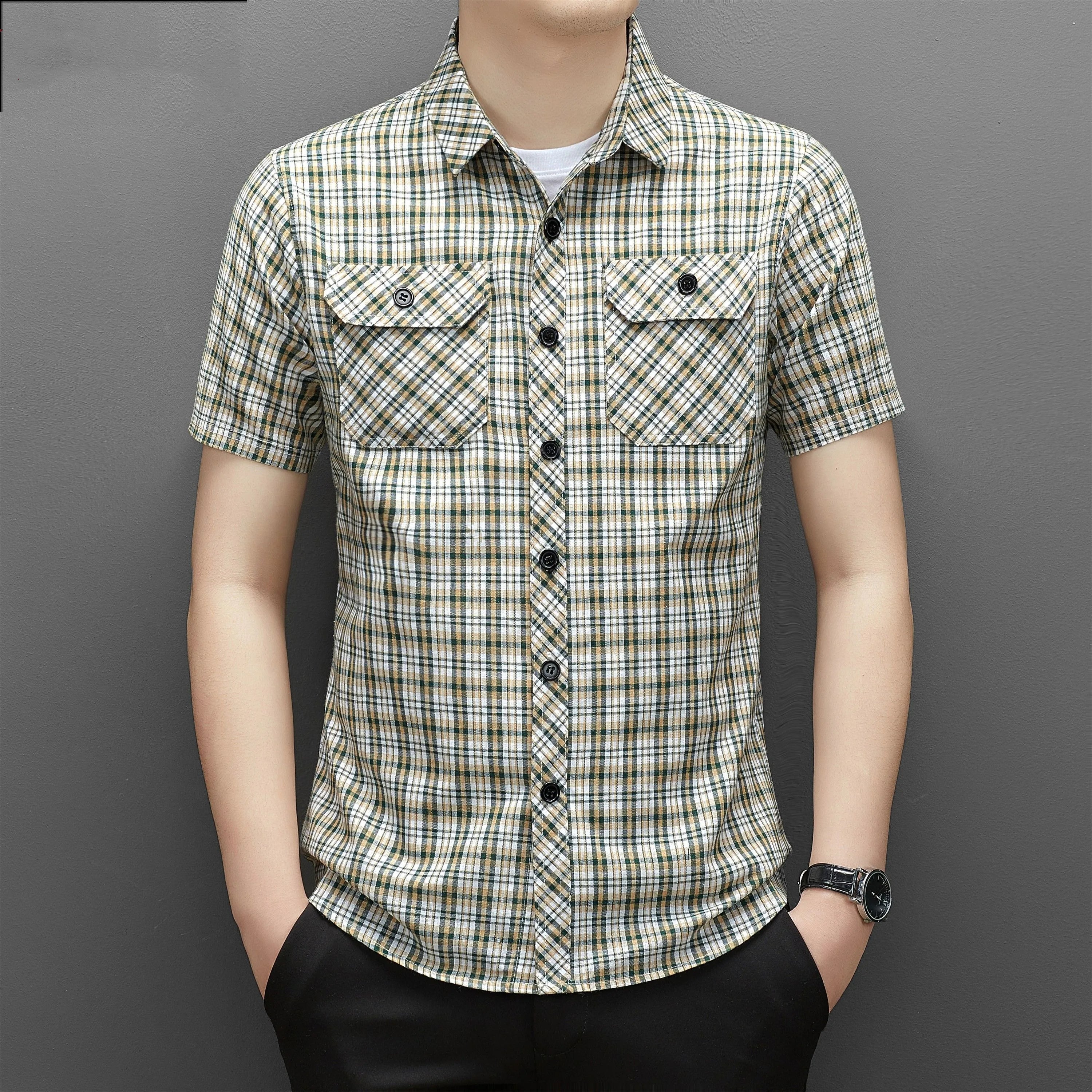 Summer Cotton Men's New in Shirt Slim Fit Plaid Striped Fashion Vintage Tops