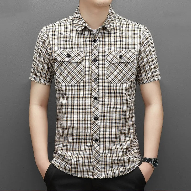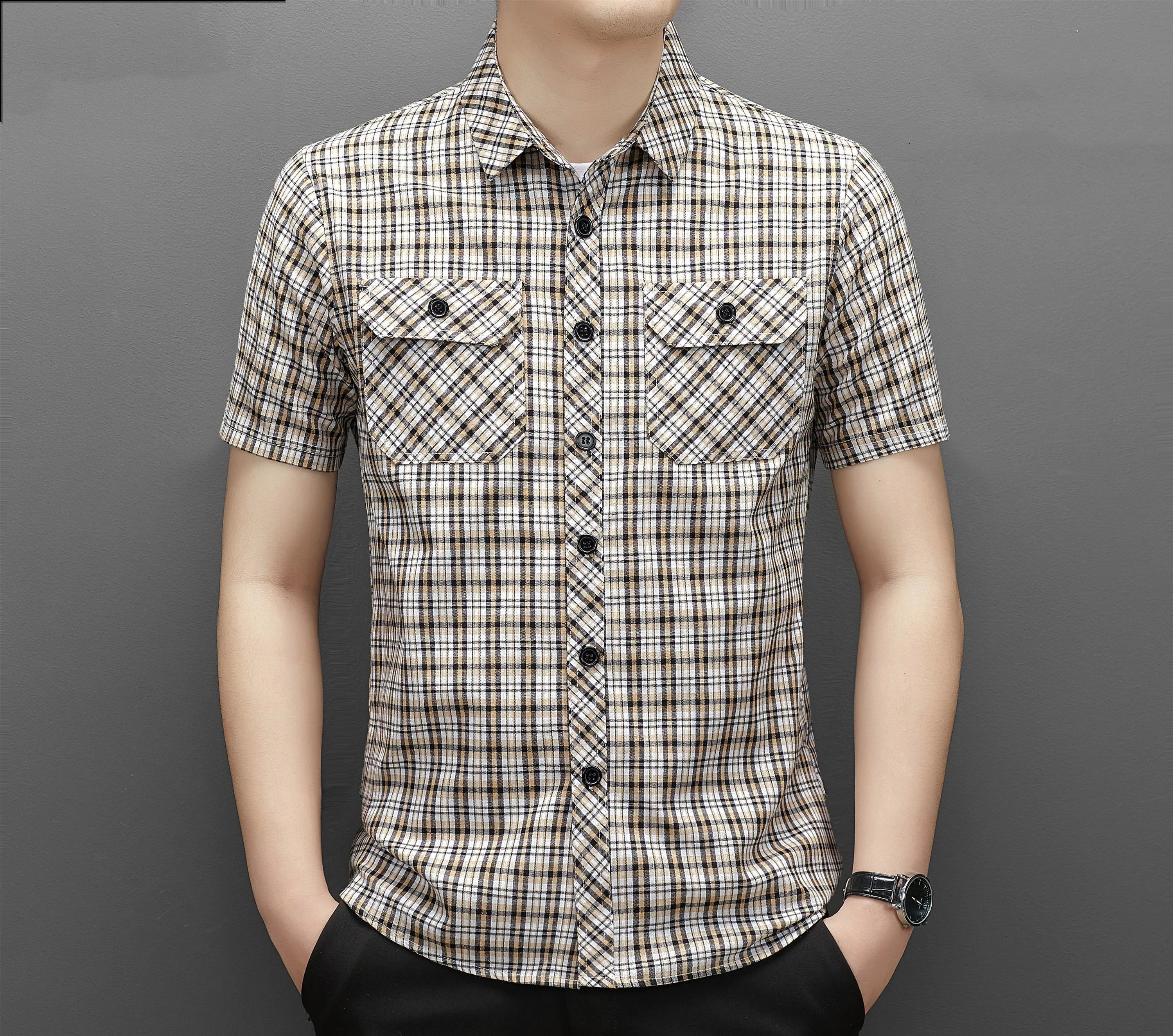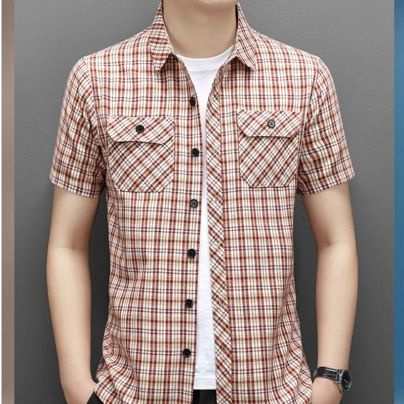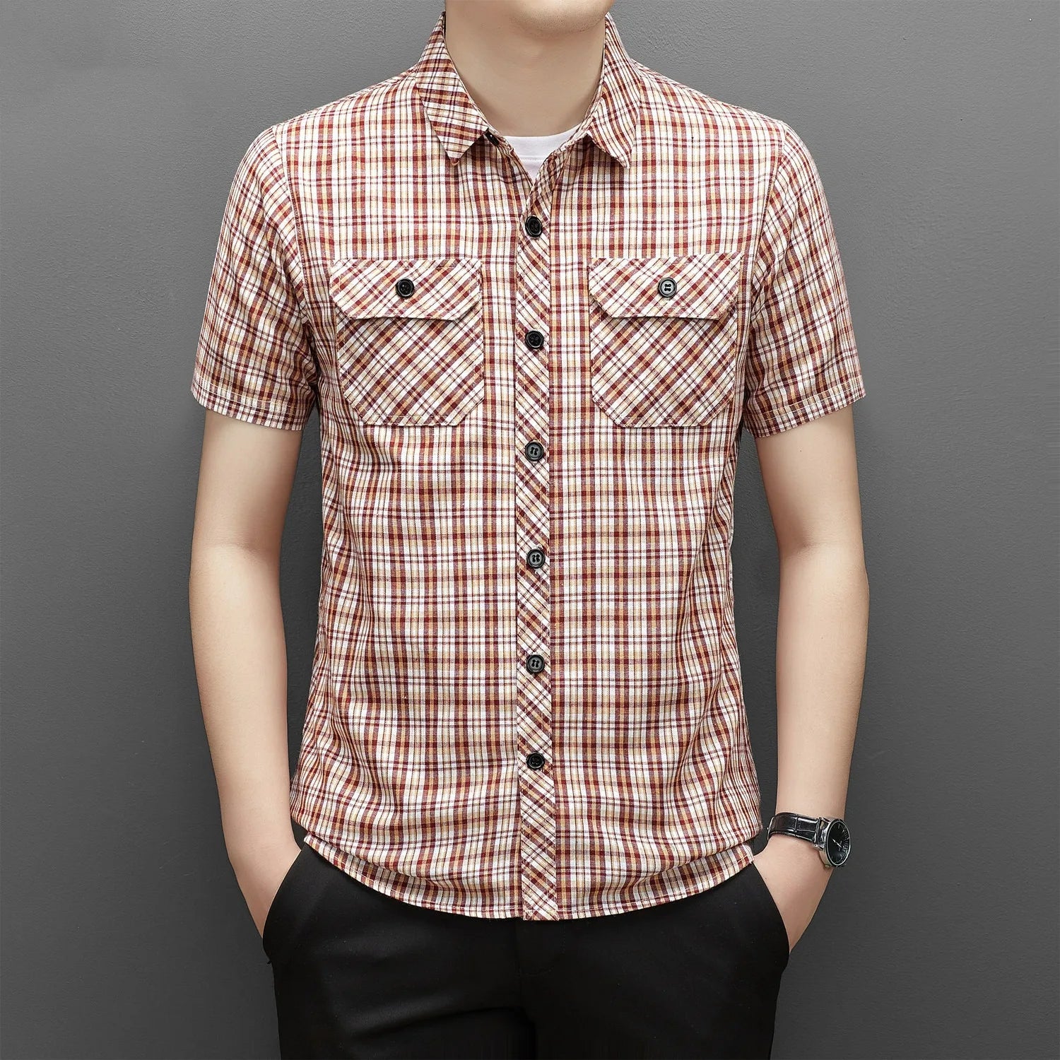 Summer Cotton Men's New in Shirt Slim Fit Plaid Striped Fashion Vintage Tops