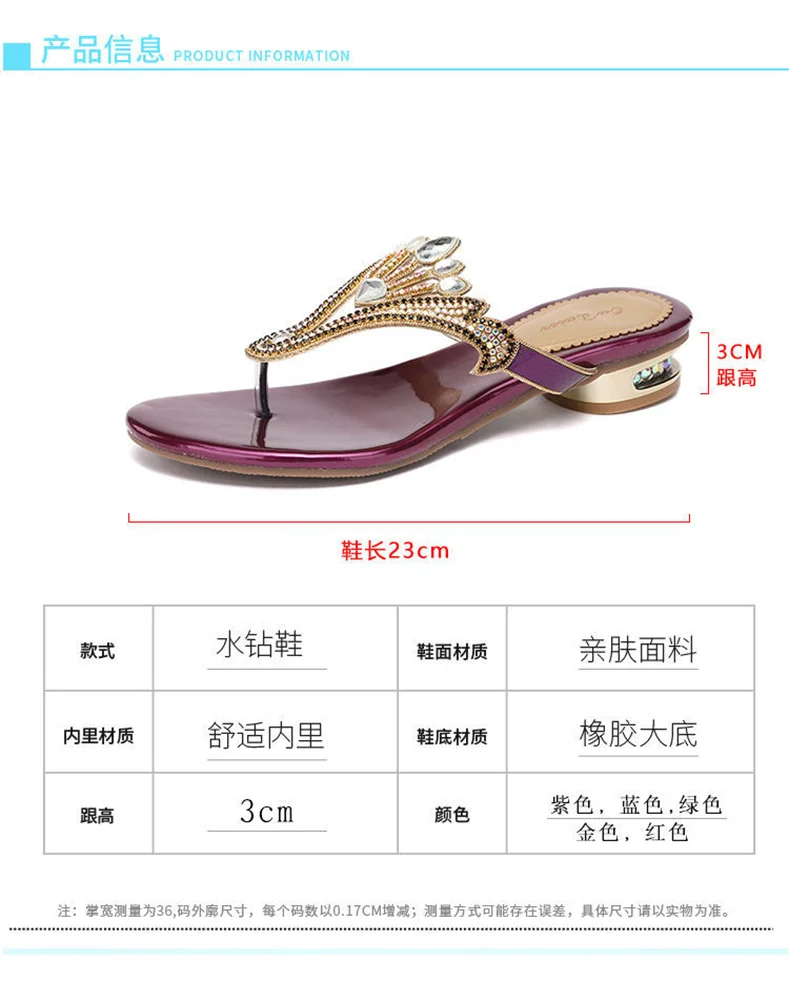 Summer 2024 New Fashion Rhinestone Low Heel Sandals Korean Version Beach Shoes
