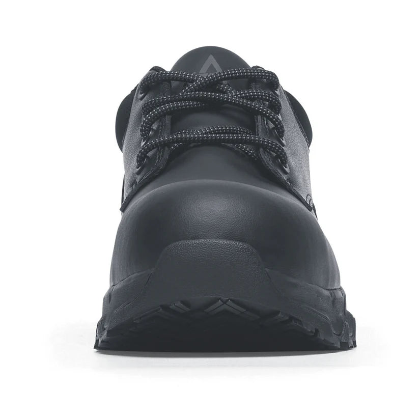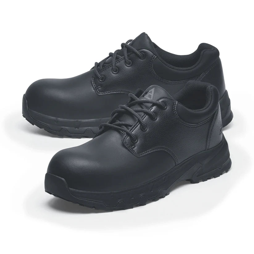 Built for demanding environments, the Barra Black safety shoe delivers reliable protection, comfort, and durability from the first step to the end of your shift. Engineered with a nanocomposite toe cap rated to withstand 200 joules and puncture‑resistant materials, it keeps your feet safe in high‑risk workplaces. A superior slip‑resistant outsole with TripGuard technology ensures stable footing on a wide range of surfaces, while the waterproof microfibre upper keeps you dry and comfortable throughout the day.