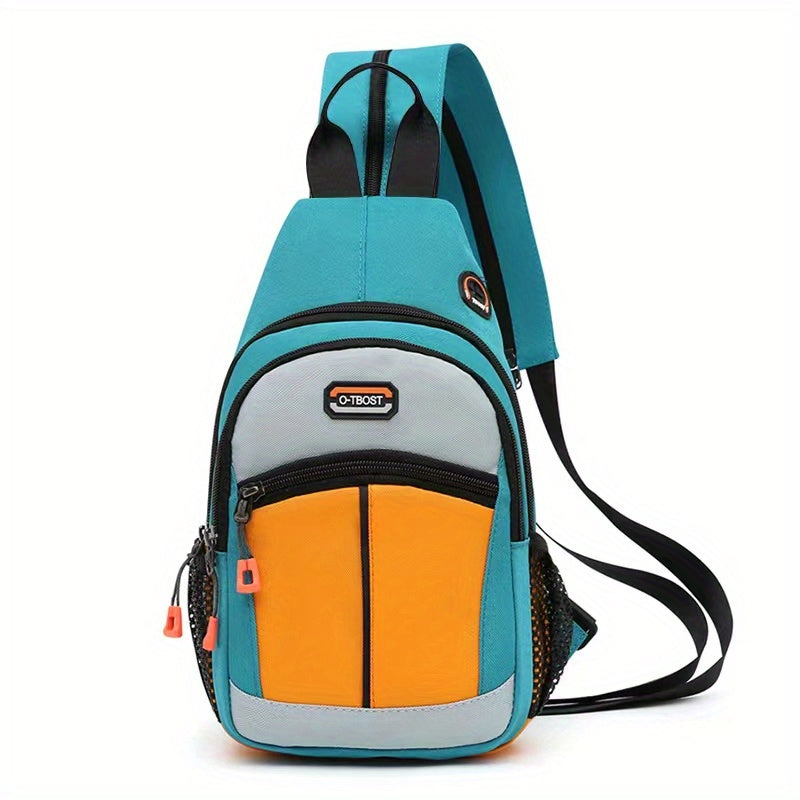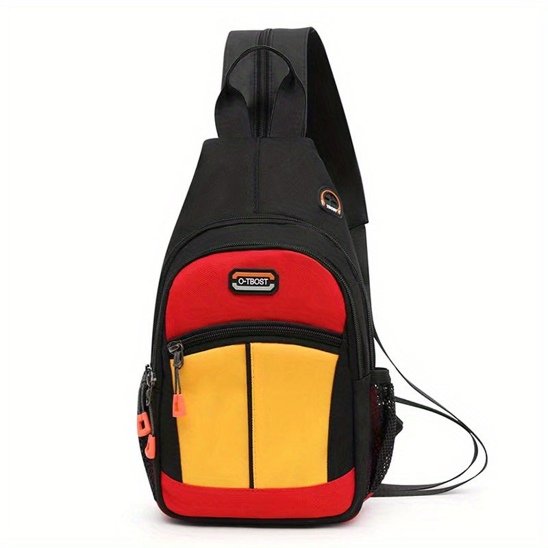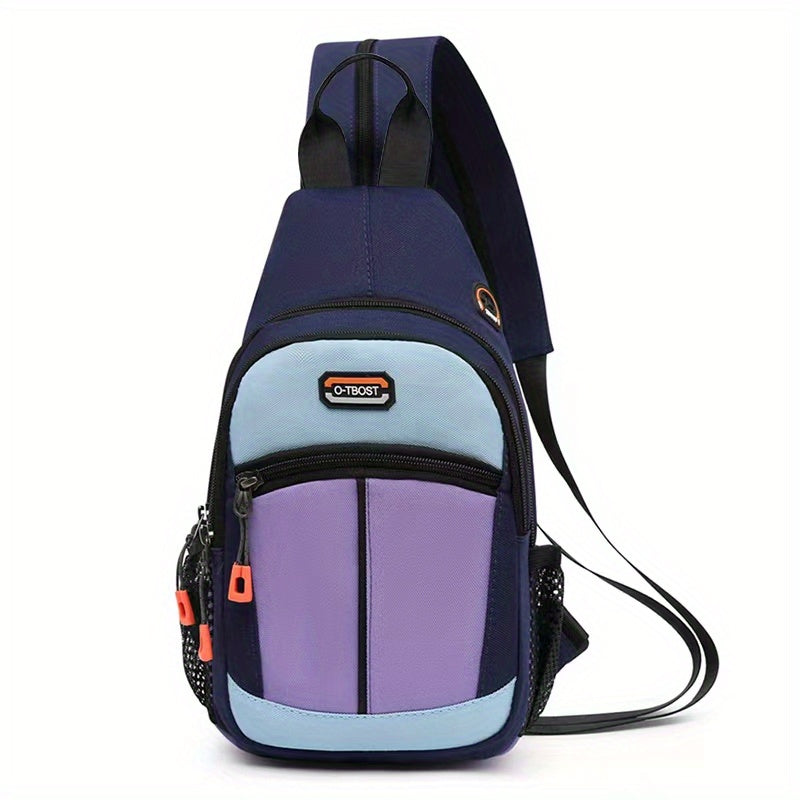 Colorblock Sling Backpack, Trendy Outdoor Travel Chest Bag, Zipper Strap Crossbody Bag