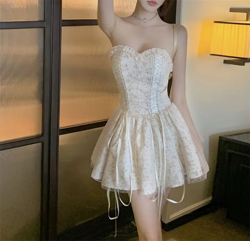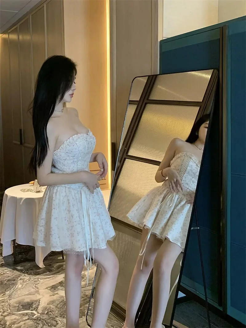 EDGLuLu Summer Vacation Outfits Woman 2024 Strapless Drawstring Lace-Up