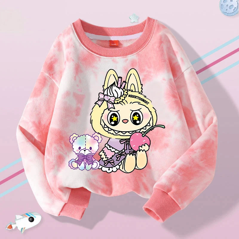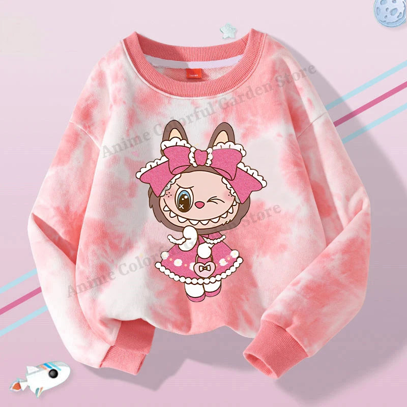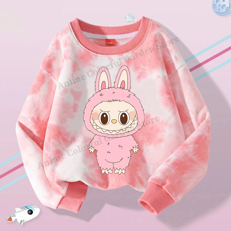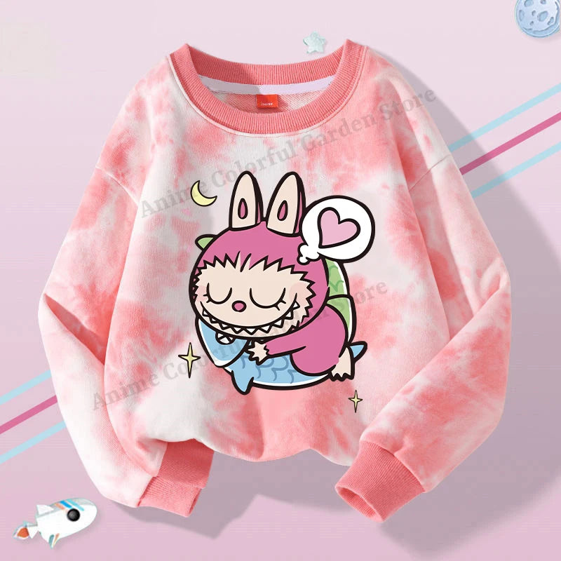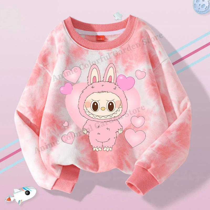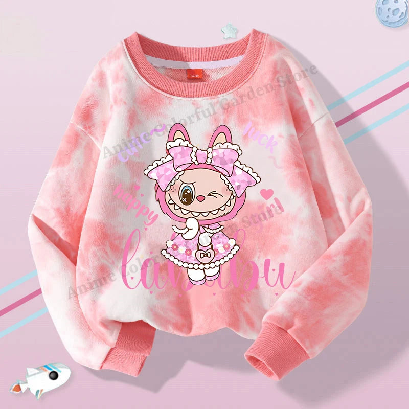 Labubu Round Neck Sweatshirt for Children Anime Cartoon Cute Hoodies Boys Girls Spring Sweet New Sports Shirt Kids Clothes Gifts
