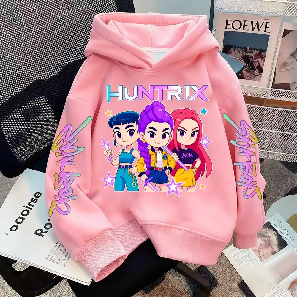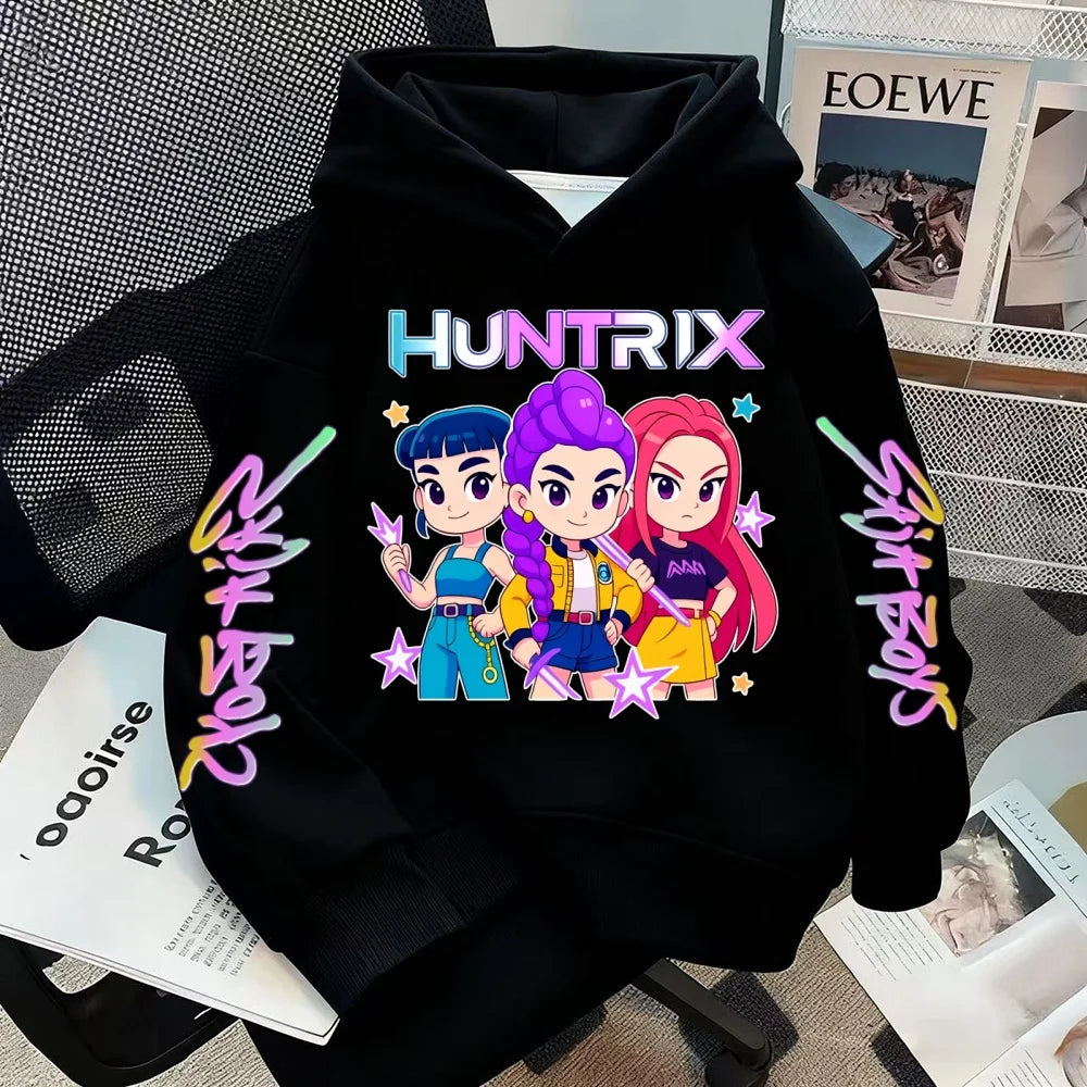 HUNTRIX SAJABOYS K-POP Group Boy Girl Pullovers Hoodie Outdoor Street Sports Casual Loose Children Long-sleeve Warm Sweatshirt