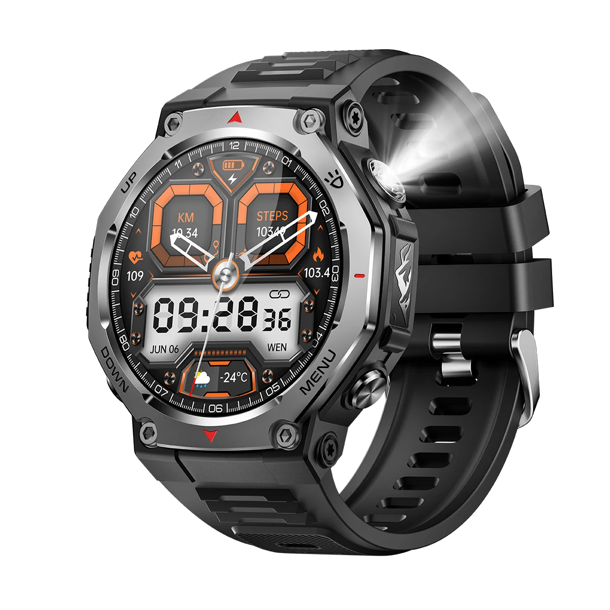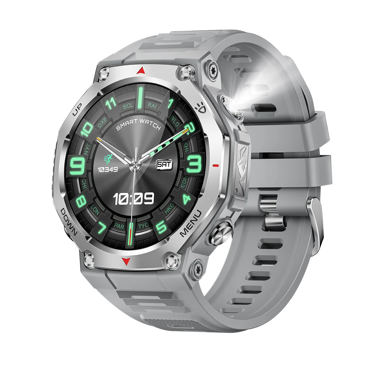 The KT85 Smartwatch is built for those who demand strength, clarity, and long‑lasting performance. Featuring a vivid AMOLED screen, 5ATM waterproof certification, Bluetooth calling, and a powerful built‑in flashlight, it’s the ideal companion for sports, travel, and outdoor adventures.