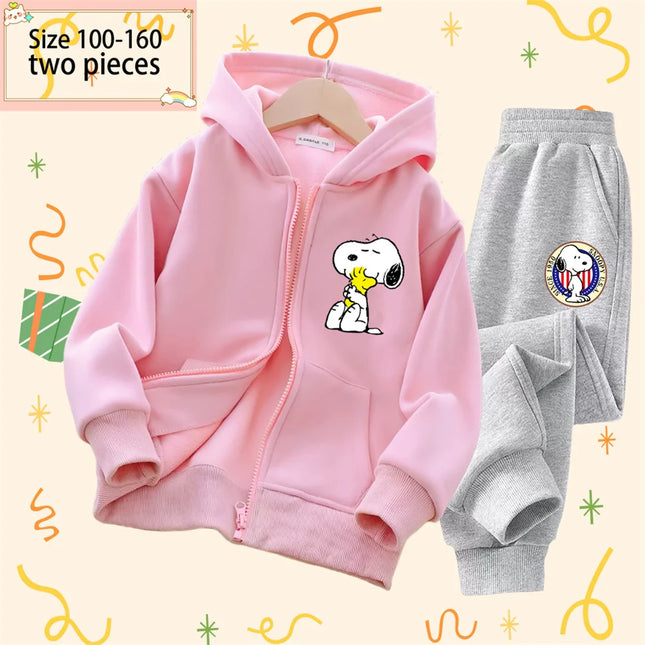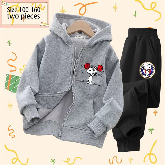 Cute Dog Snoopy Print Hooded Zipper Sweater Children's Activewear Boys Girls Spring Fall and Winter Activewear Set Ages 3-14