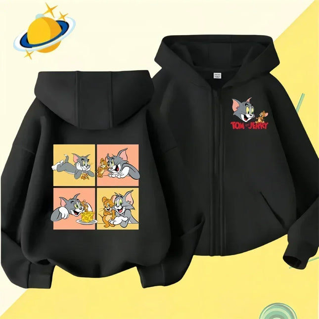 Cat and Mouse kids zipper hoodie cartoon print Autumn/Winter long-sleeved hooded sweatshirt casual top for boys and girls