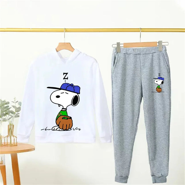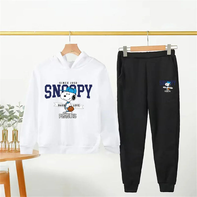 Disney Snoopy Fall Kids Street Fashion Boys Girls Sports pullover + Sweatpants Outdoor Sports 2 piece set ages 3-14