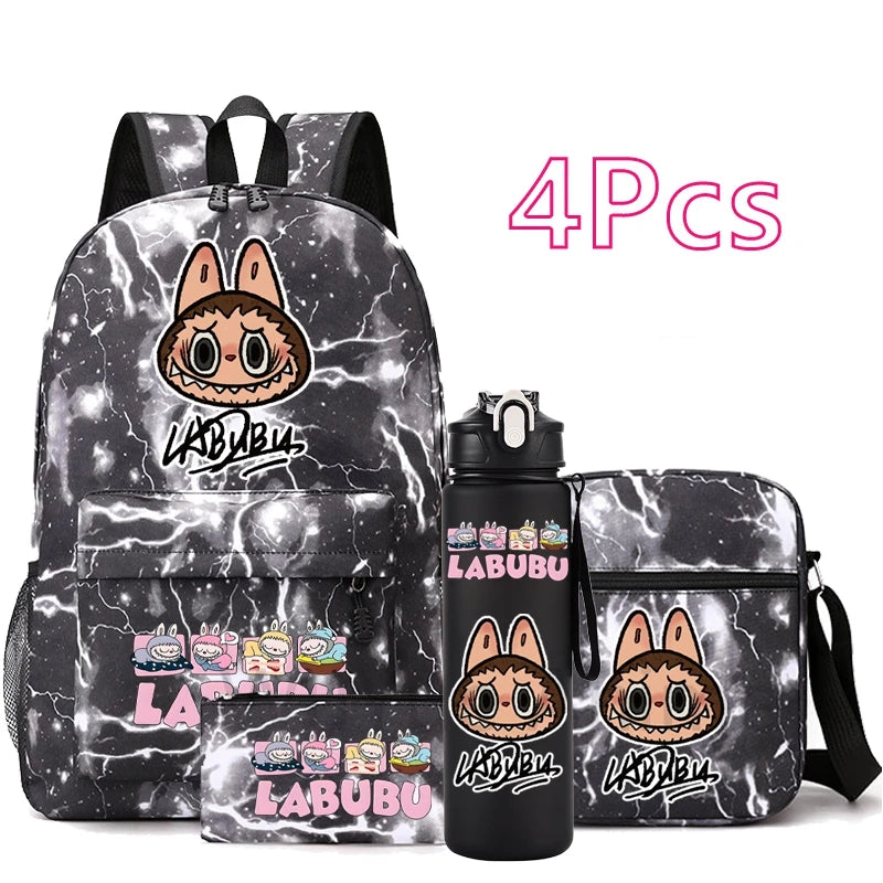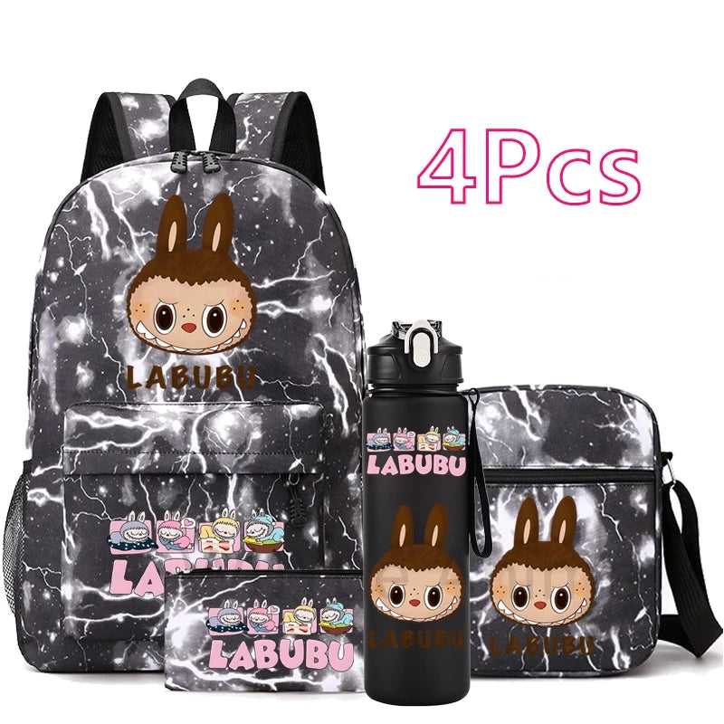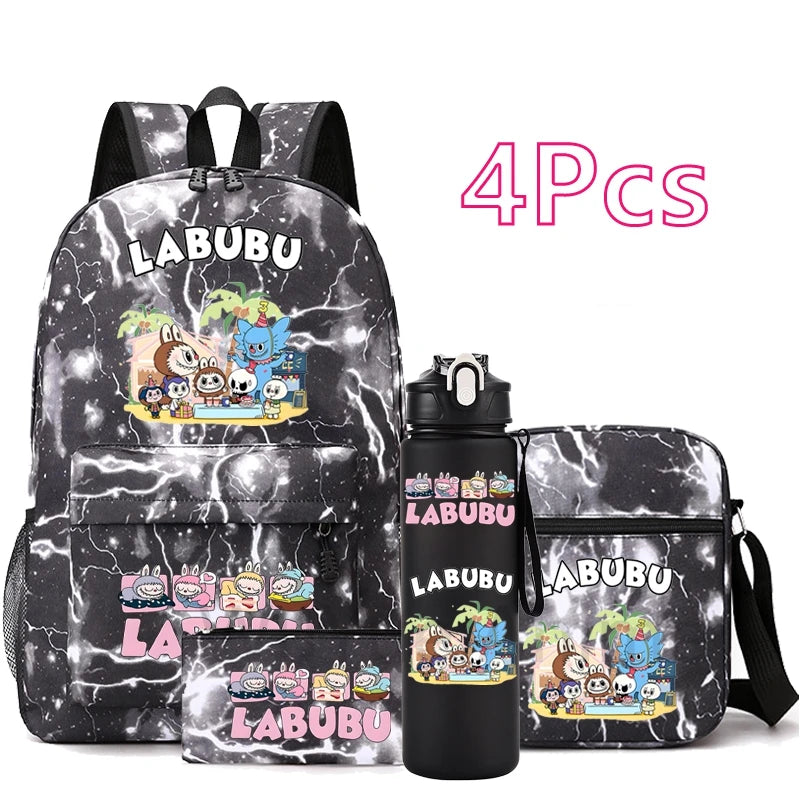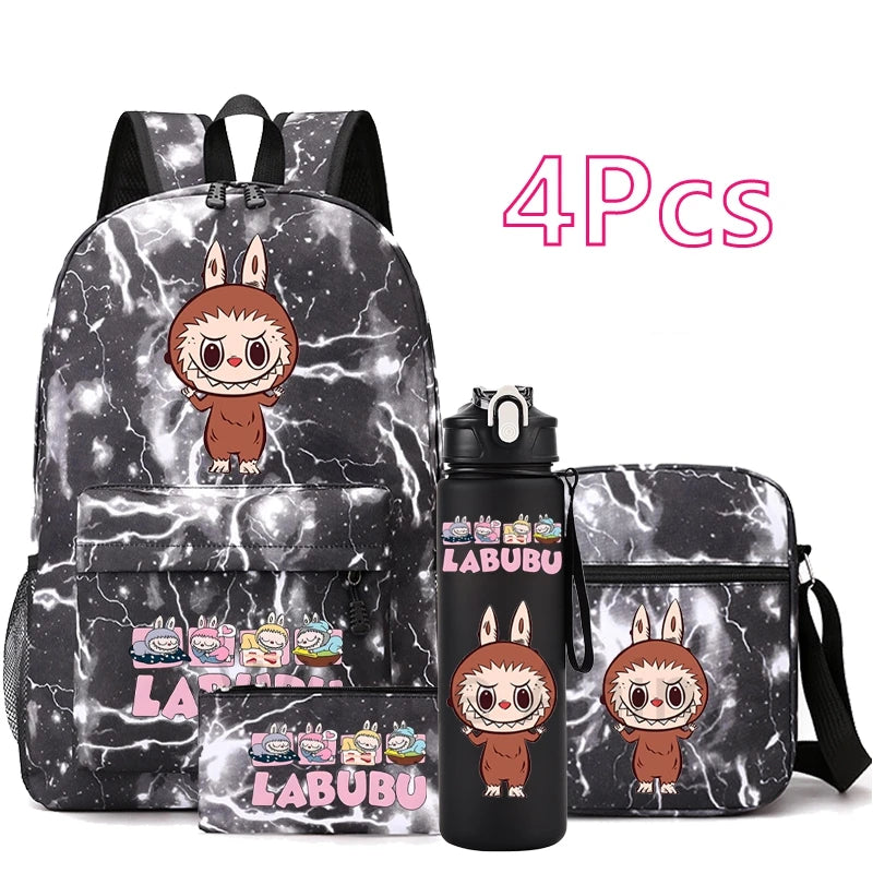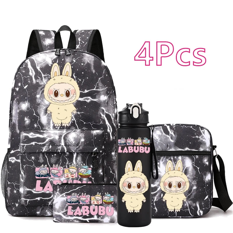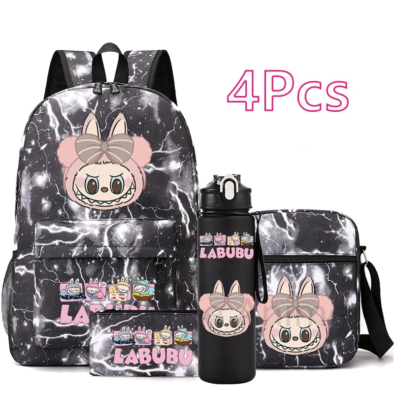 4Pcs/set Cute Printed Backpack Teenger Student Boy Girl Bookbag Schoolbag Travel Bag Outdoor 750Ml Water Bottle Kid Gift Mochila