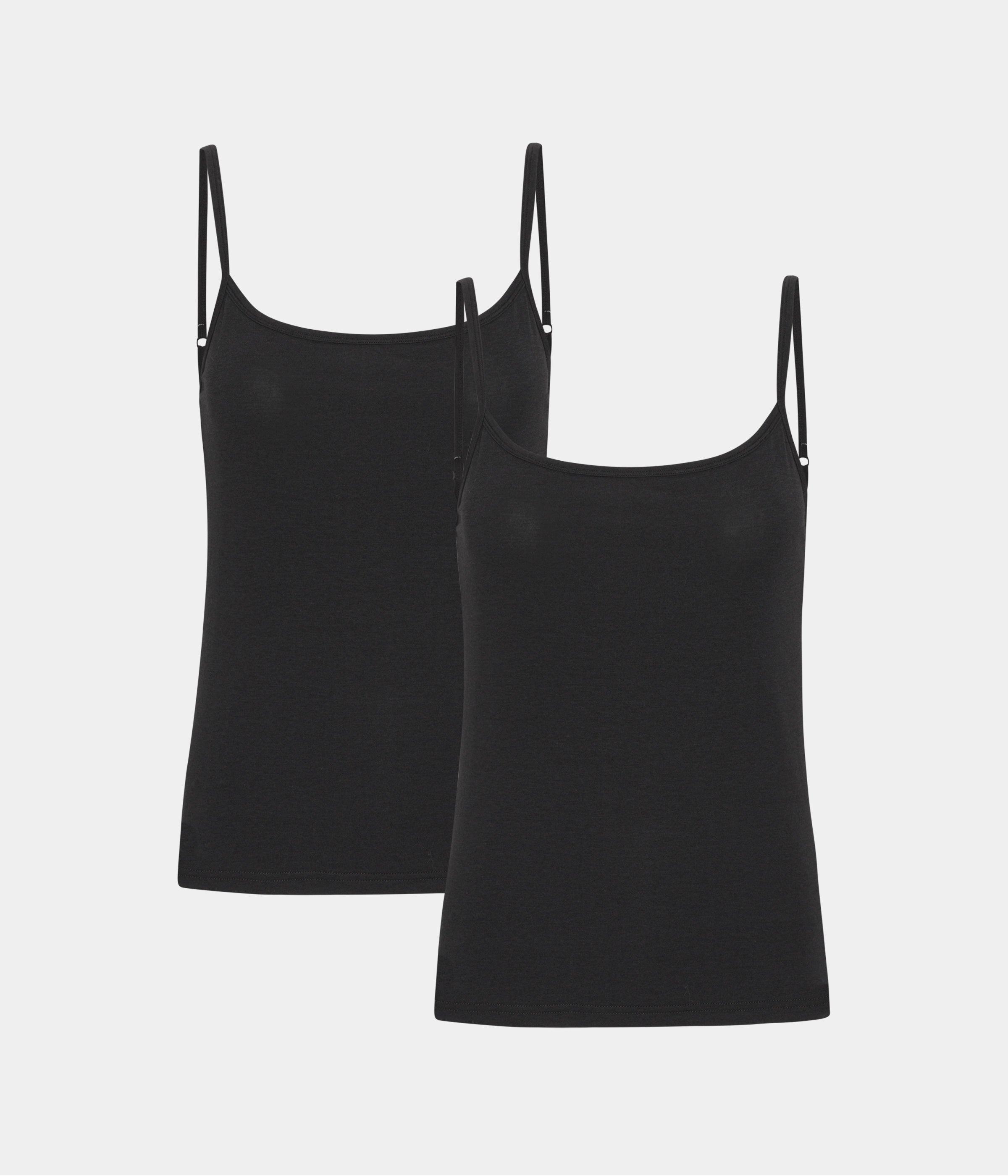 Disse sorte toppe har sidesømme og tynde justerbare stropper.Bambusviskose er udover at være superblødt, bl.a. åndbart og temperaturregulerende, hvilket gør toppene... Lesen Sie mehr