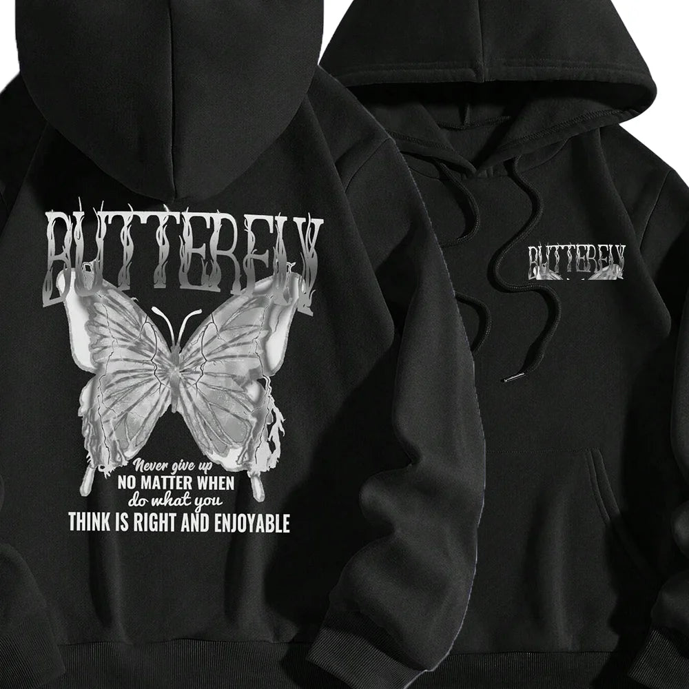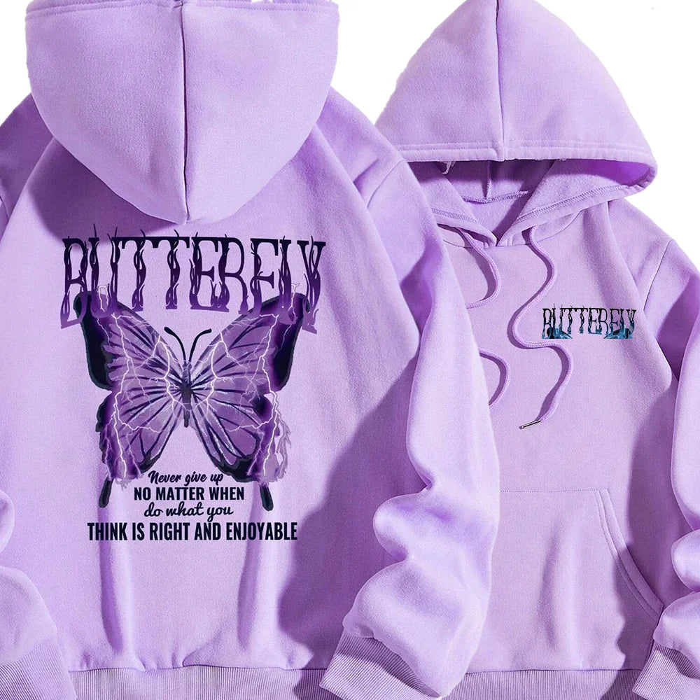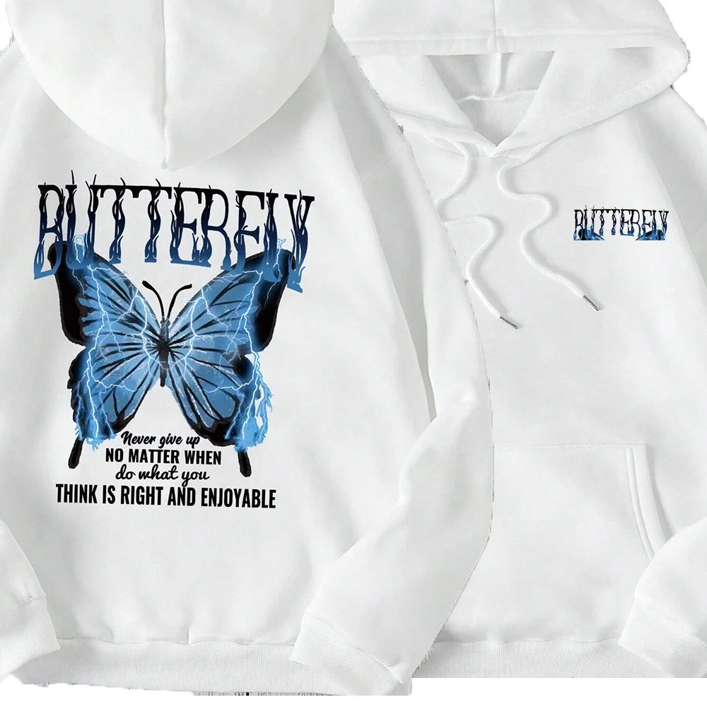 Never Give Up Butterfly Picture Print Girls Hoodie Spring Autumn Wide Ladies Loose Casual Hooded Sportswear Basic Clothing