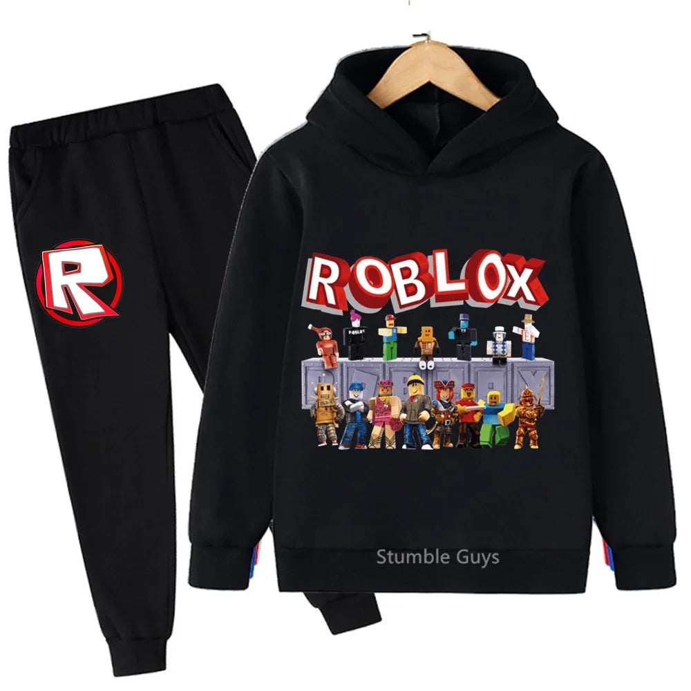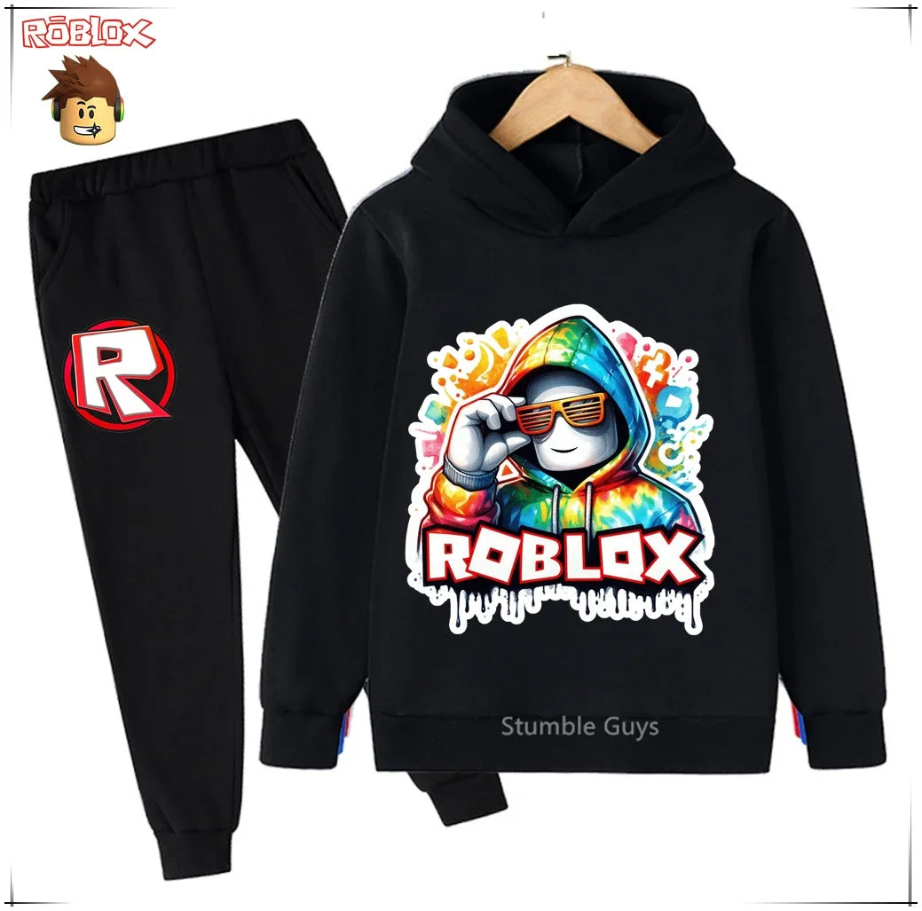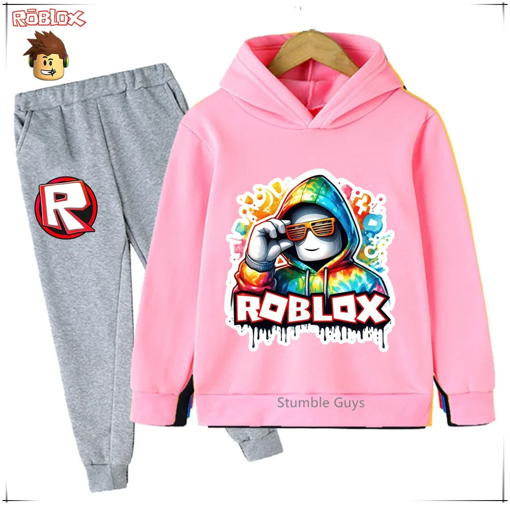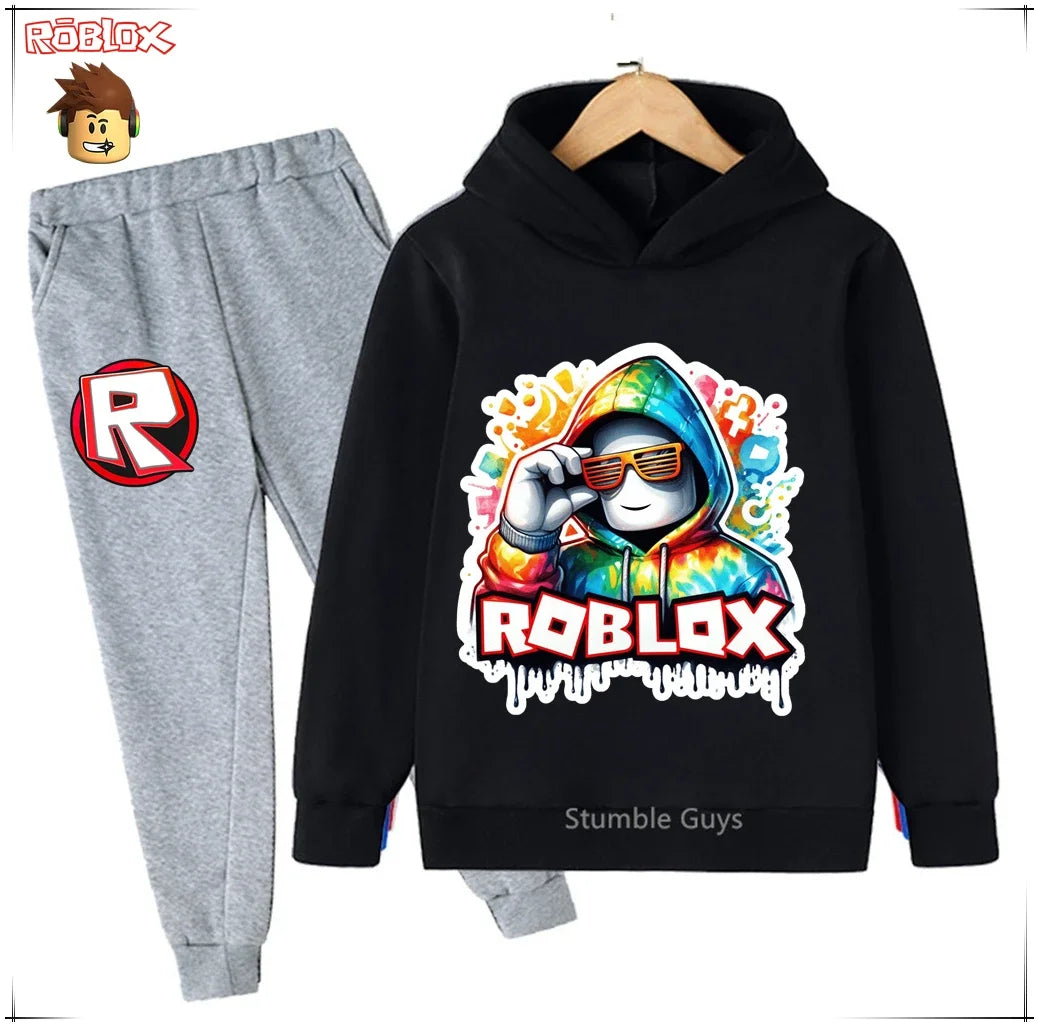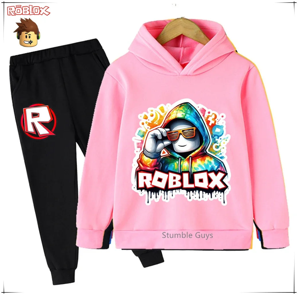 Spring Autumn Boys Clothes Girls Roblox Anime Hoodie Set 2-Piece Kids Fashion Casual Sweatshirt