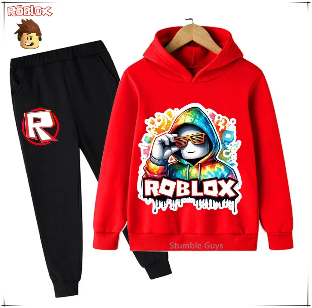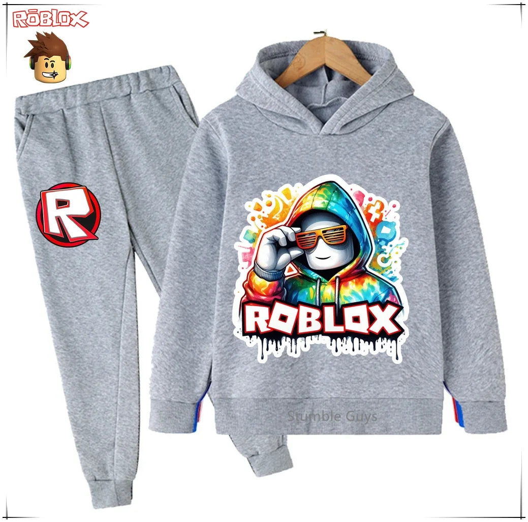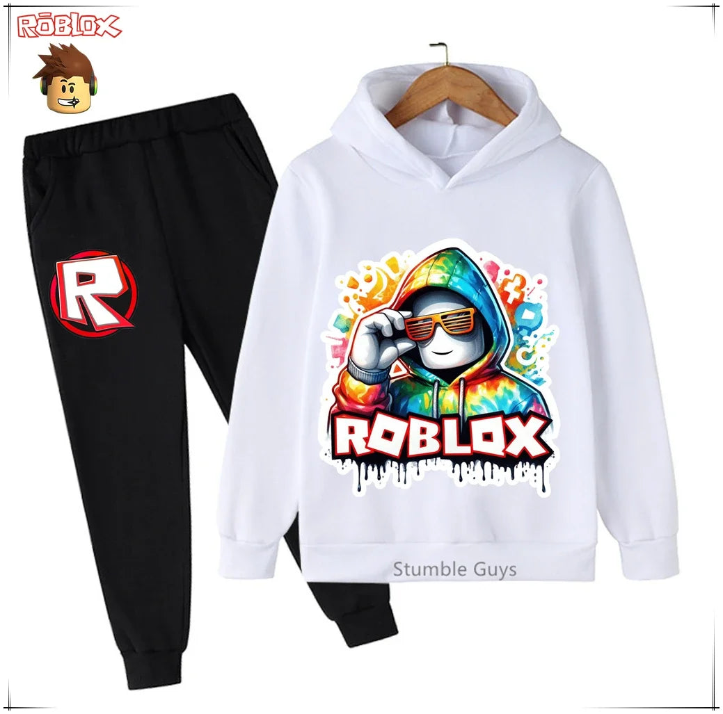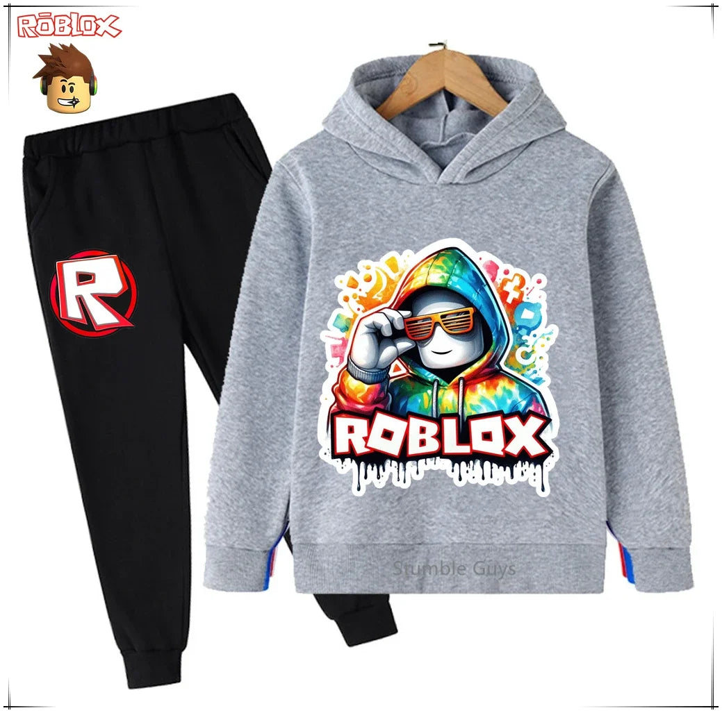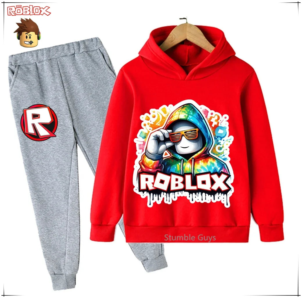 Spring Autumn Boys Clothes Girls Roblox Anime Hoodie Set 2-Piece Kids Fashion Casual Sweatshirt
