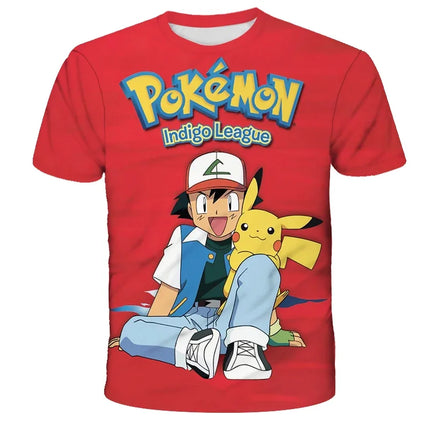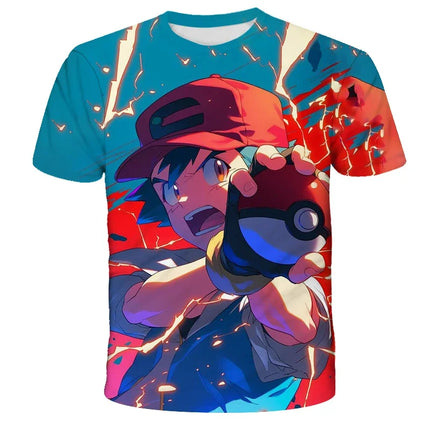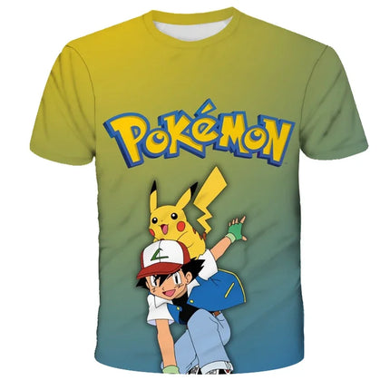 Summer Anime Pokemon Boy T-shirt, Pikachu Children's 3D Fashion Casual Children's Cosplay Clothing, Adult Short-sleeved Yellow