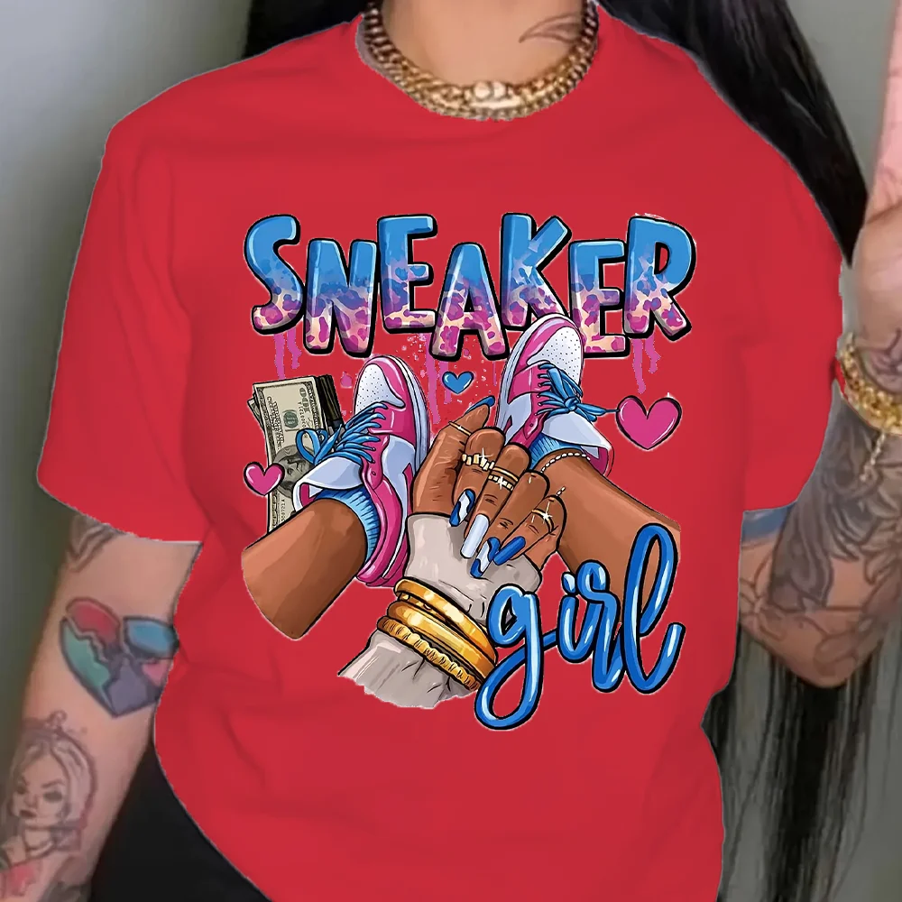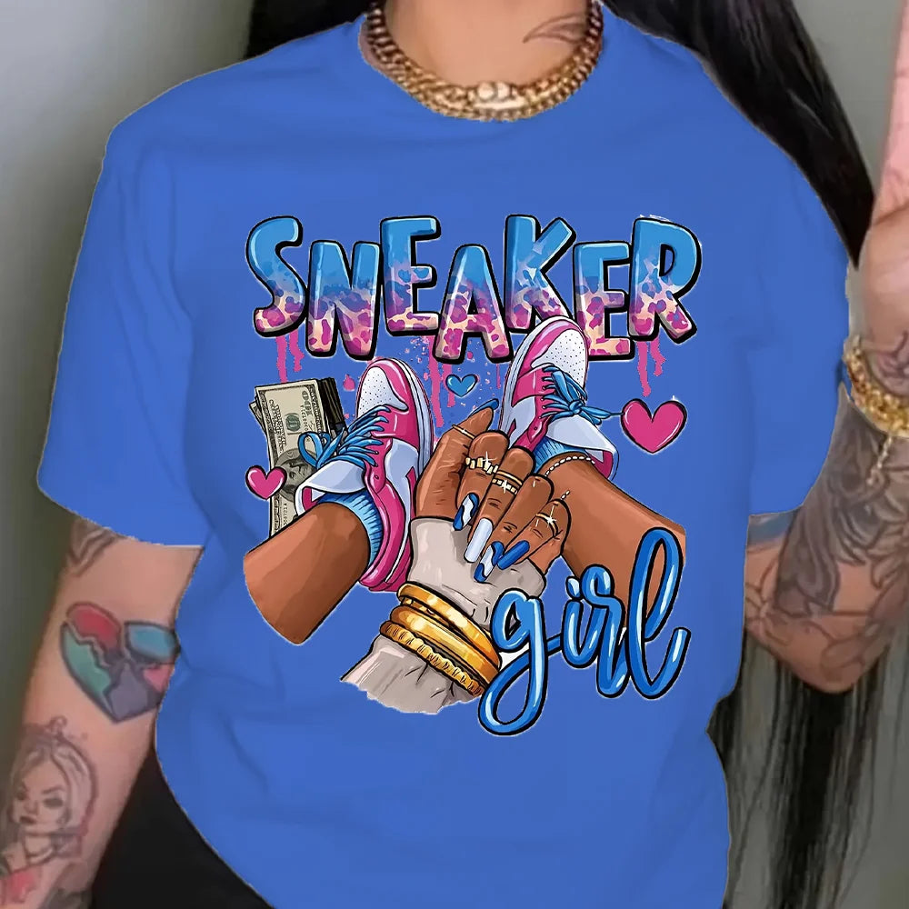 Summer Women Girl Graphic Print T-shirt Cotton T-Shirt Round Neck Casual T-shirt Oversized Loose Tee Top Clothing Streetwear