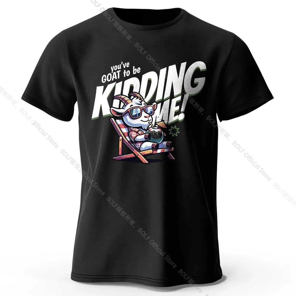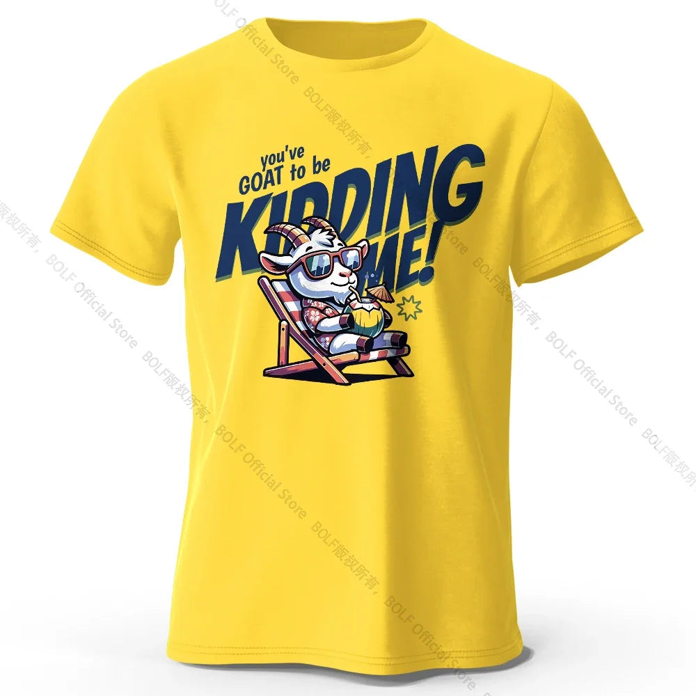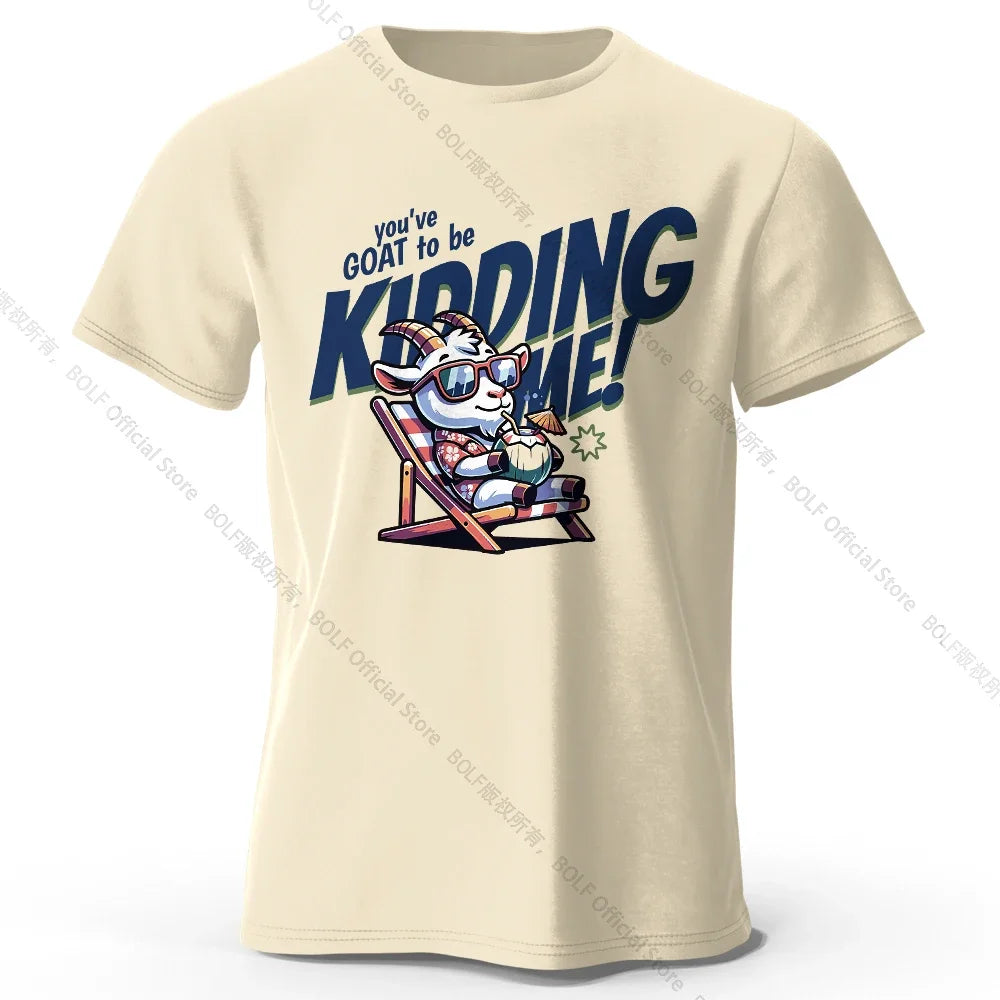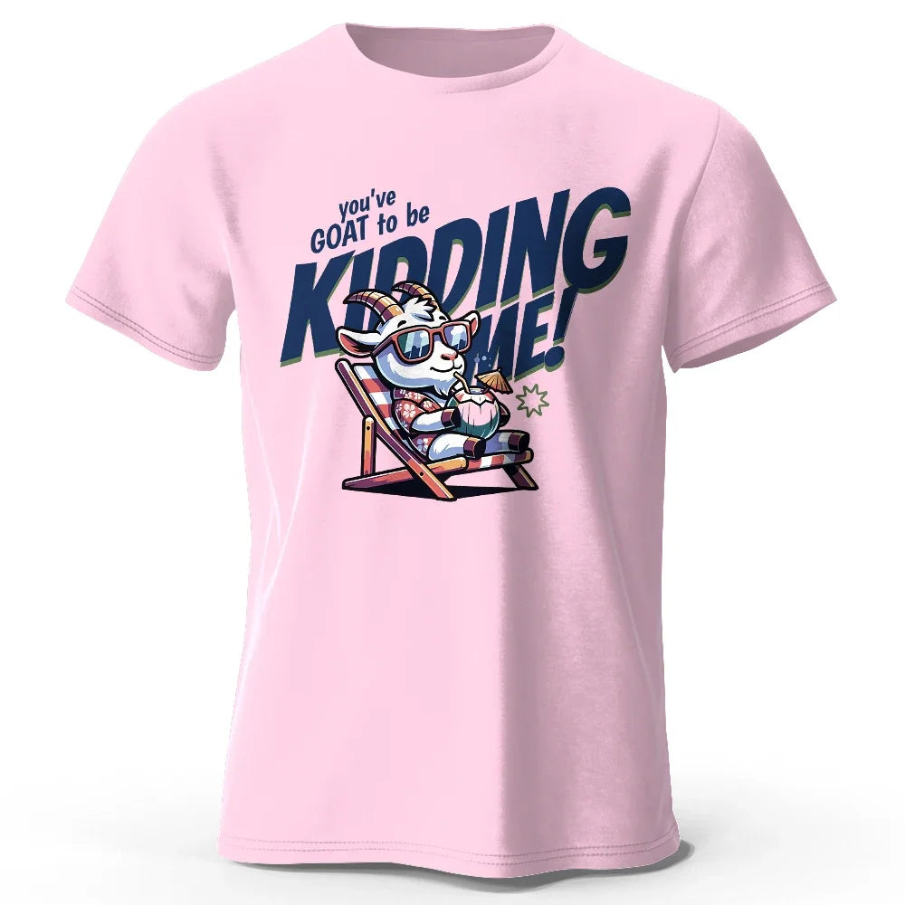 100% Cotton Hand-drawn Cartoon Goat T-shirt - Playful Animal Design Soft & Comfortable Casual Wear