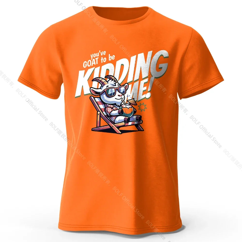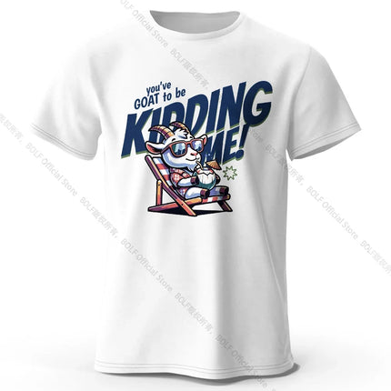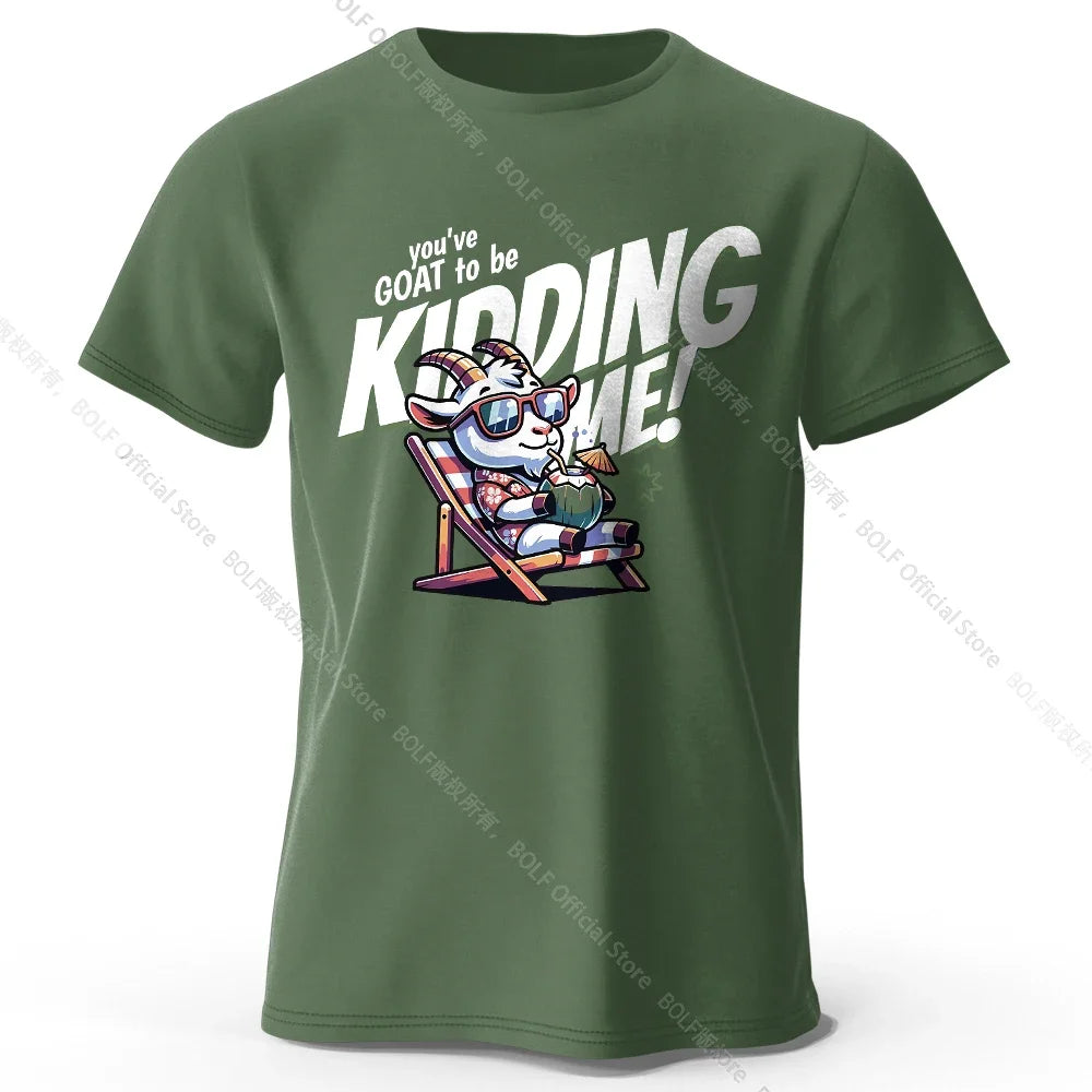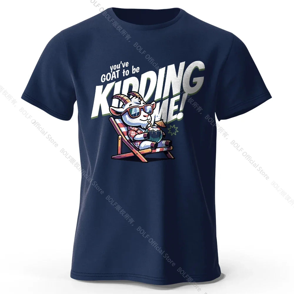 100% Cotton Hand-drawn Cartoon Goat T-shirt - Playful Animal Design Soft & Comfortable Casual Wear