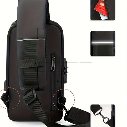 1pc Fashion Versatile Chest Bag With Password Lock, Men's Casual Crossbody Bag