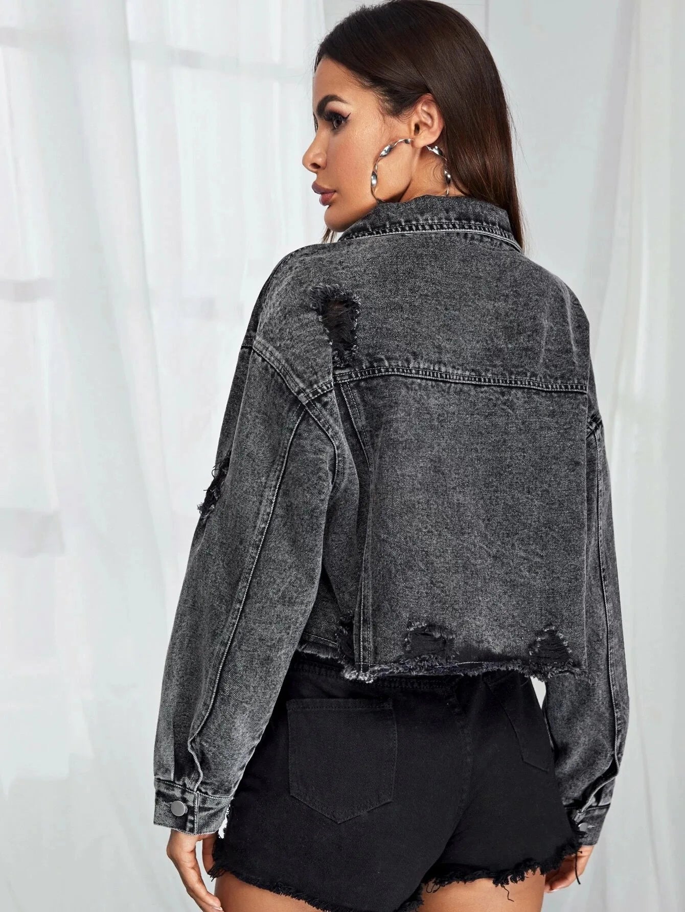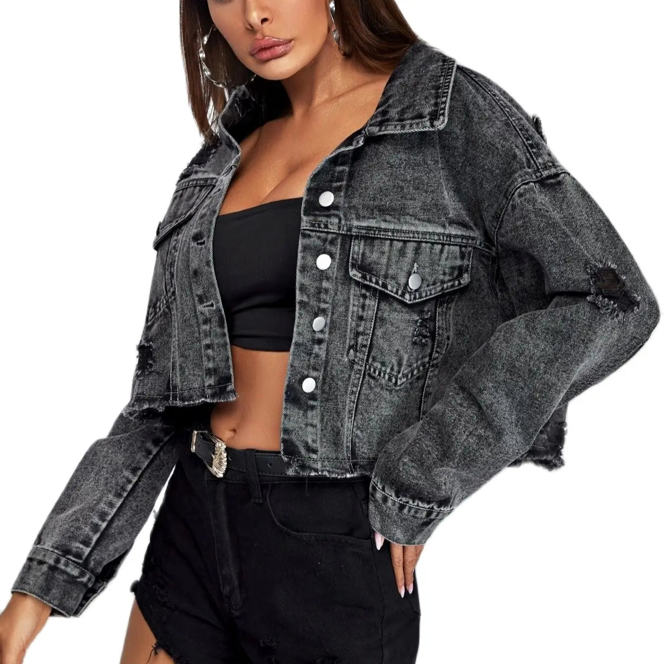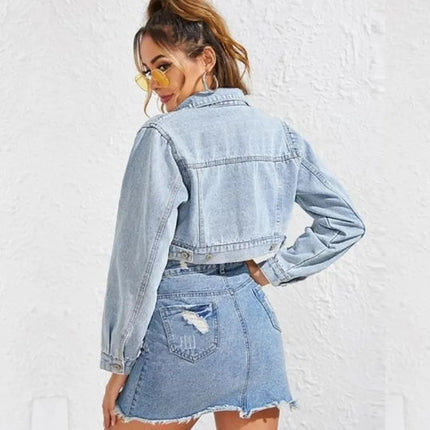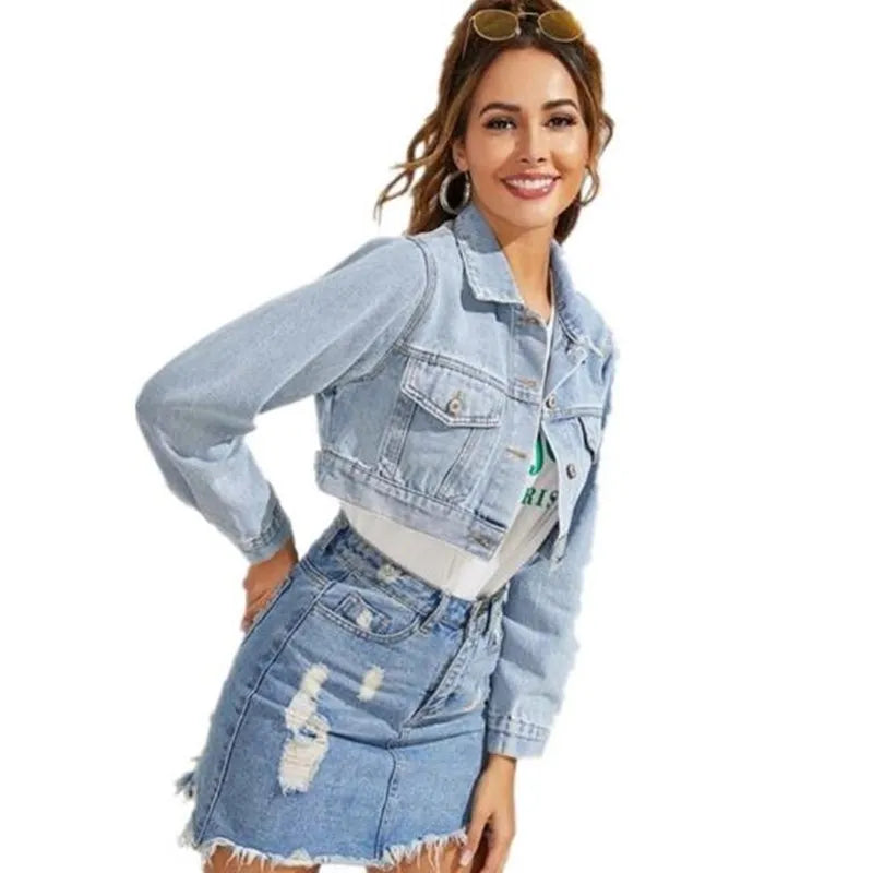 2021 European And American New Autumn Winter Ladies Loose Fashion Female Lapel Single-Breasted Short Denim Jacket Denim Women