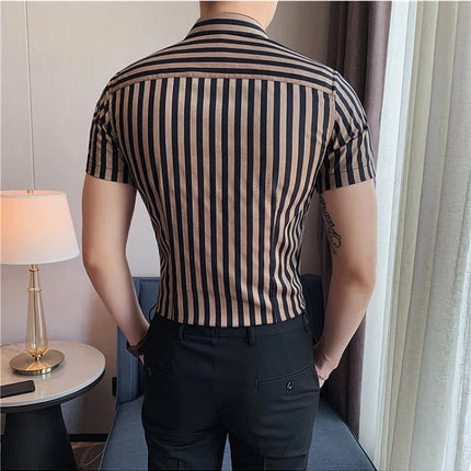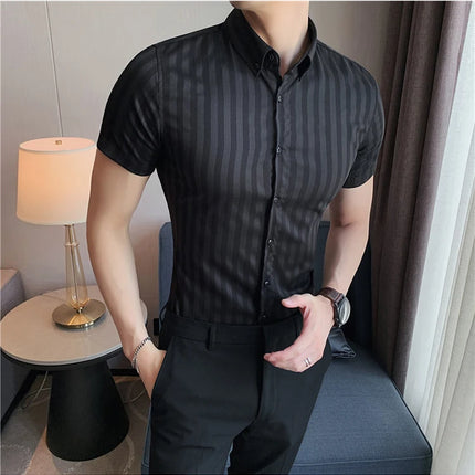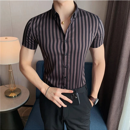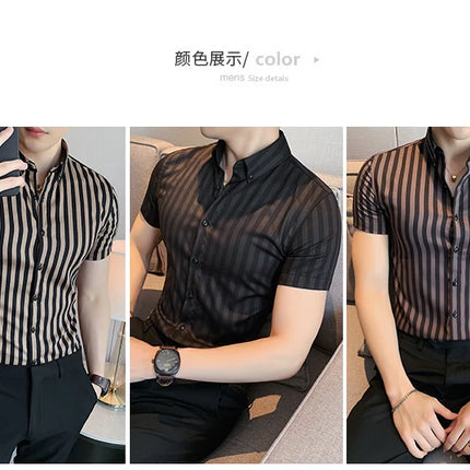 2021 Summer Men Short Sleeve Striped Shirts High Quality Male Luxury Business Casual Formal Dress Shirts Slim Streetwear Blouse