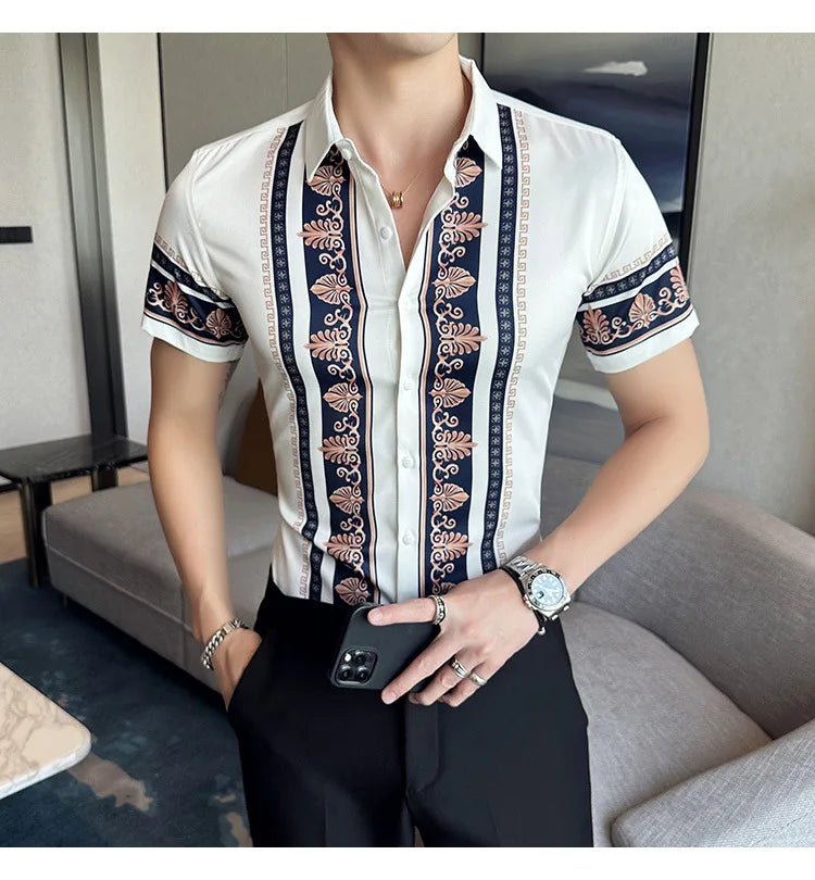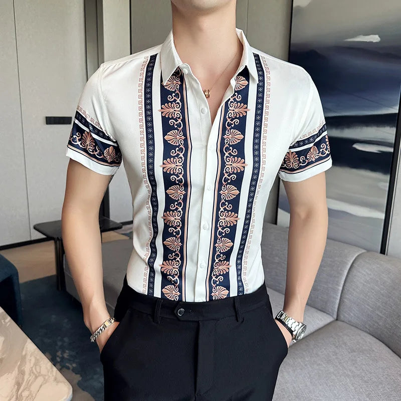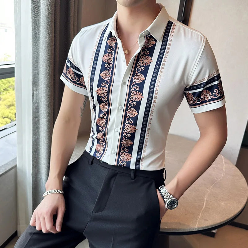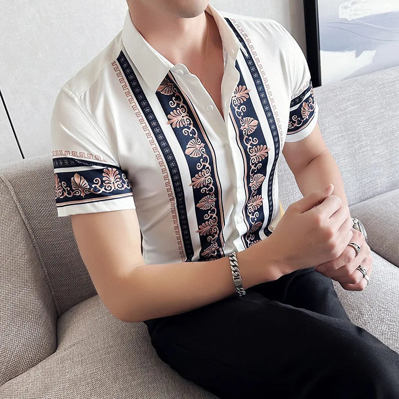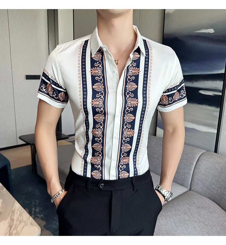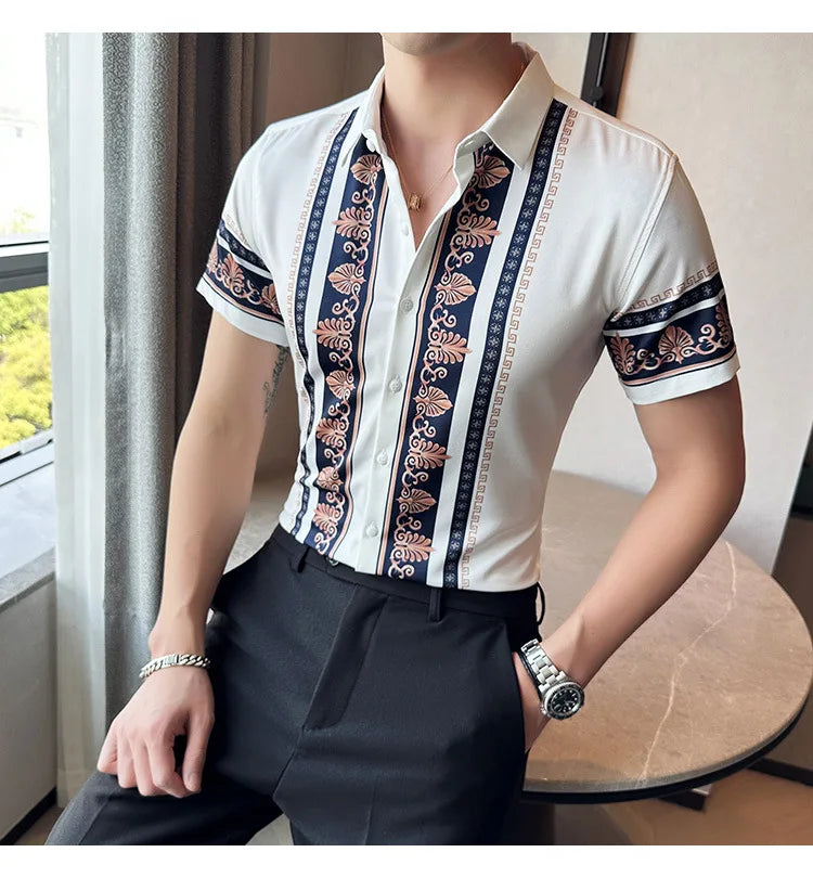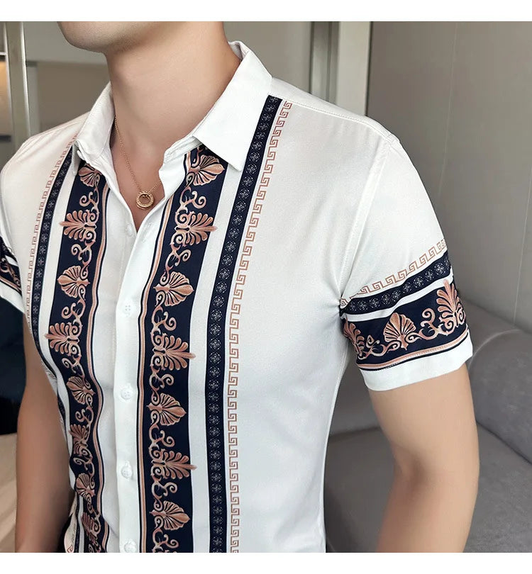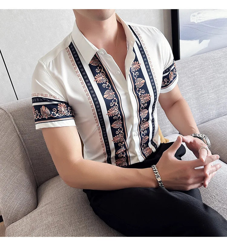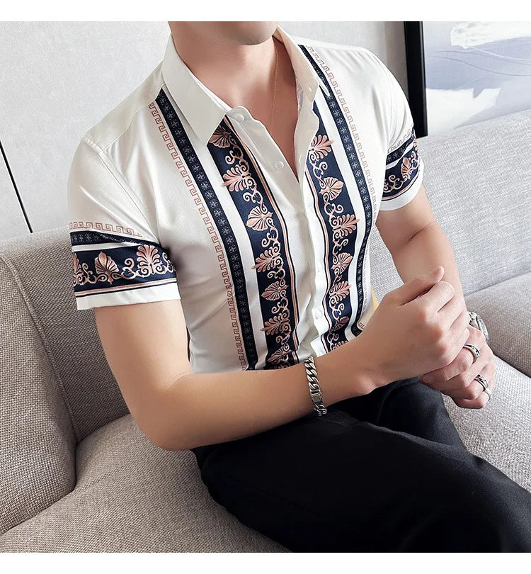 2023 Summer New Fashion Short Sleeve Print Shirt Men Slim Fit Business Social Party Dress Shirts Streetwear Plus Size 6XL-M