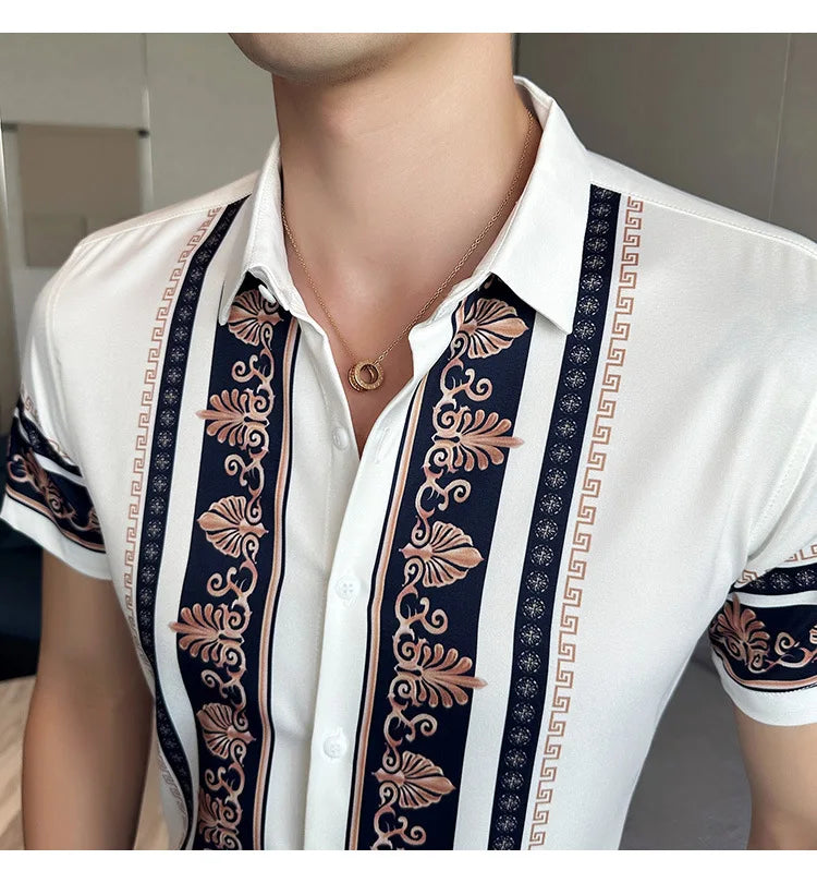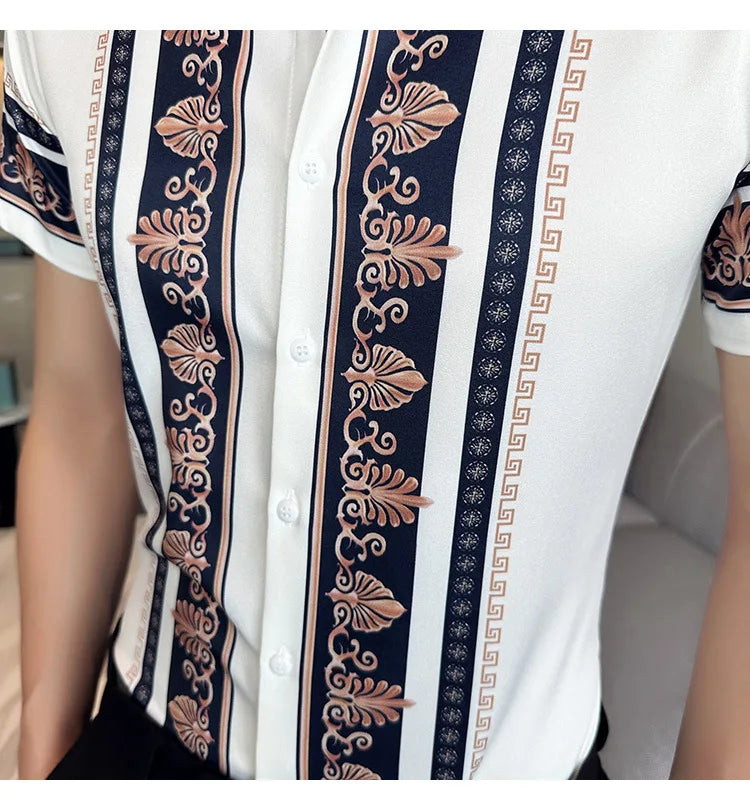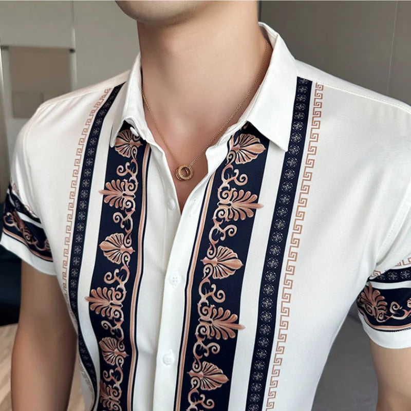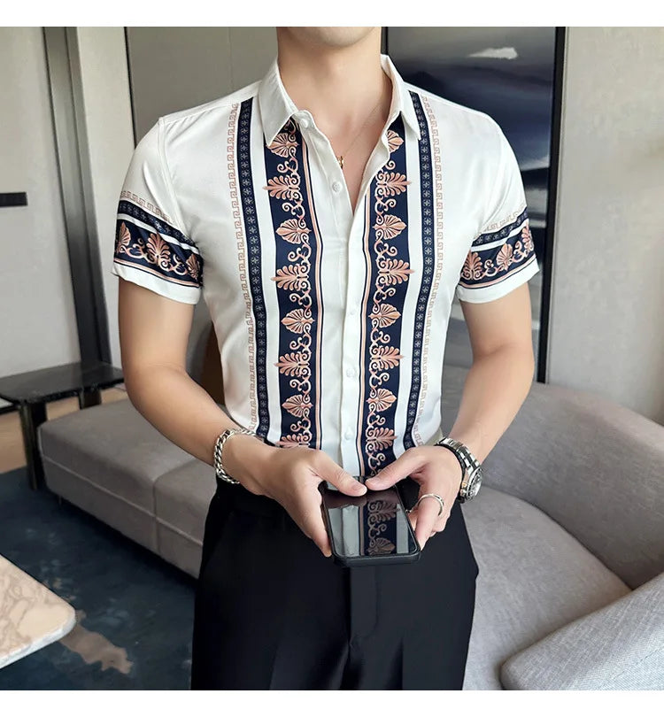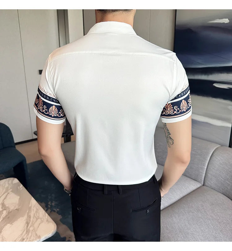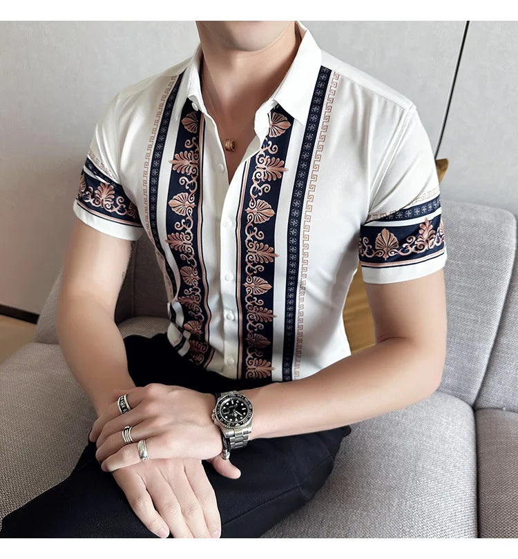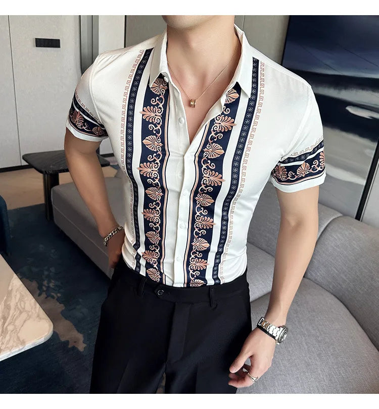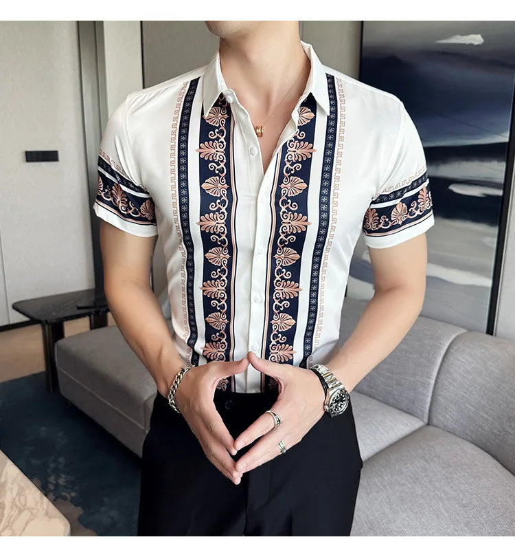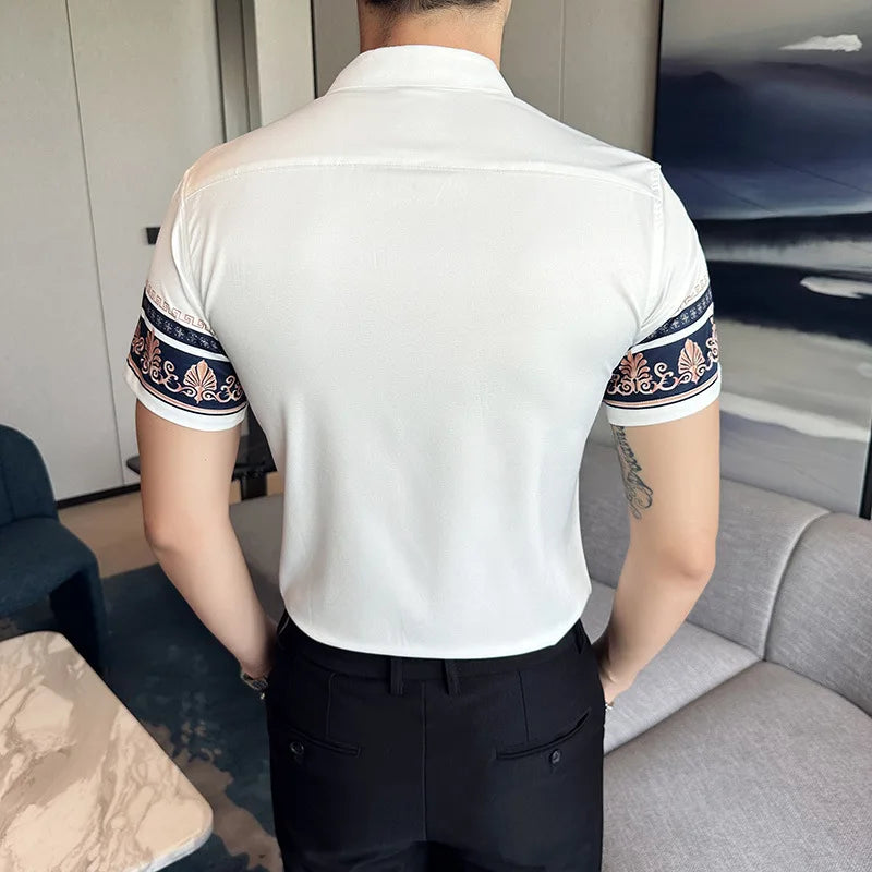2023 Summer New Fashion Short Sleeve Print Shirt Men Slim Fit Business Social Party Dress Shirts Streetwear Plus Size 6XL-M