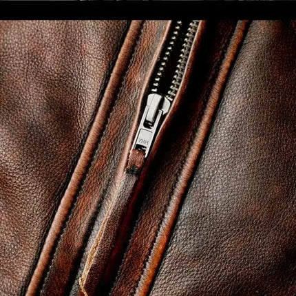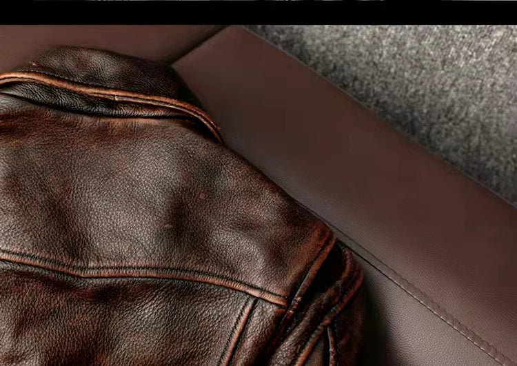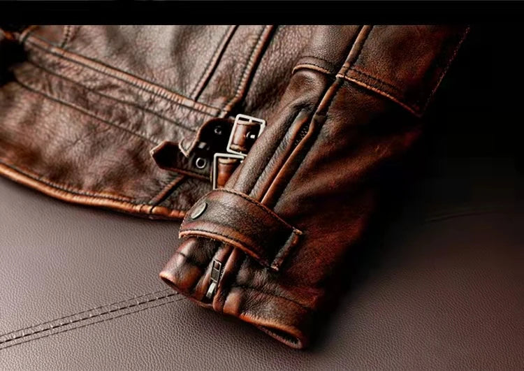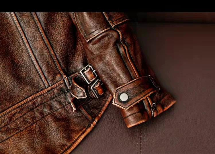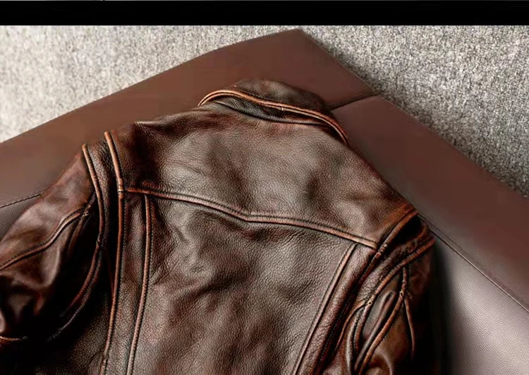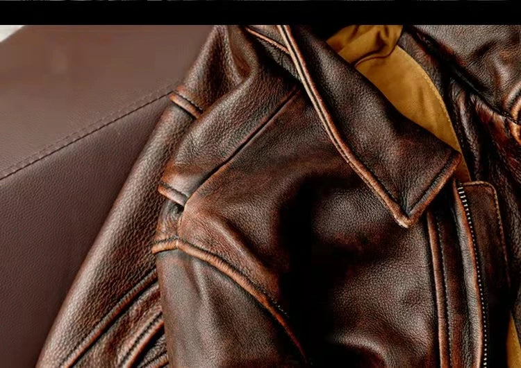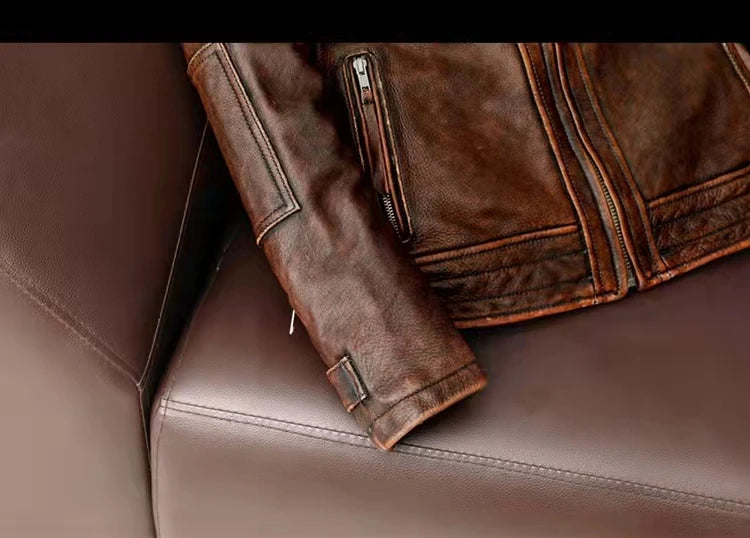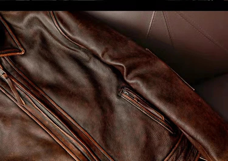 2023New Men Leather Jacket Swallow Tailed Vintage Motorcycle Top Cowhide Coat Male Biker Clothing
