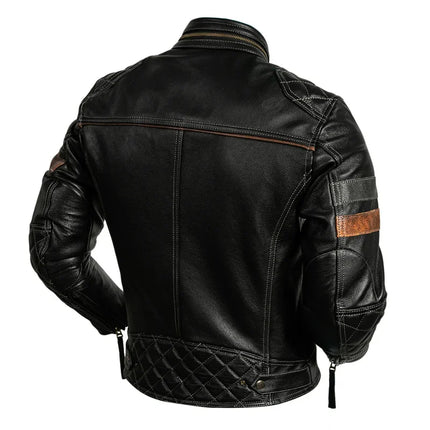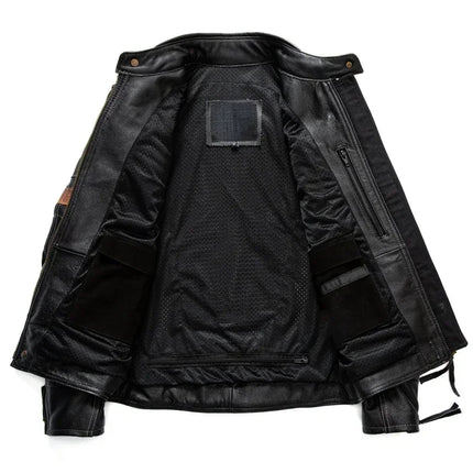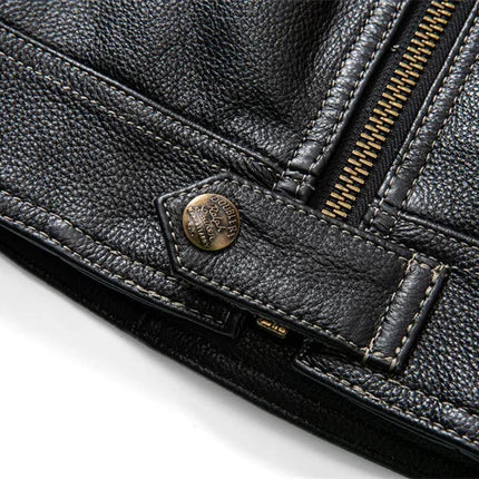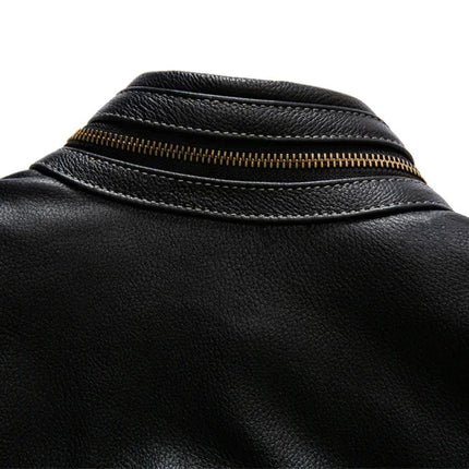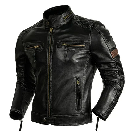 2025 first-layer cowhide, genuine leather jacket, stand-up collar trendy jacket, protective rider