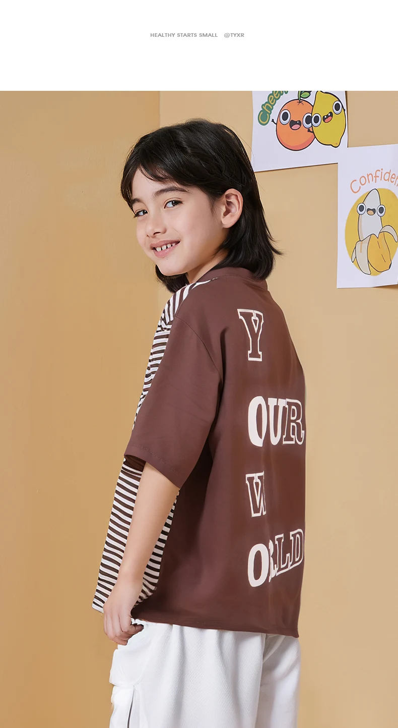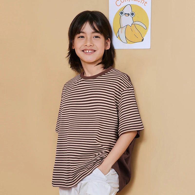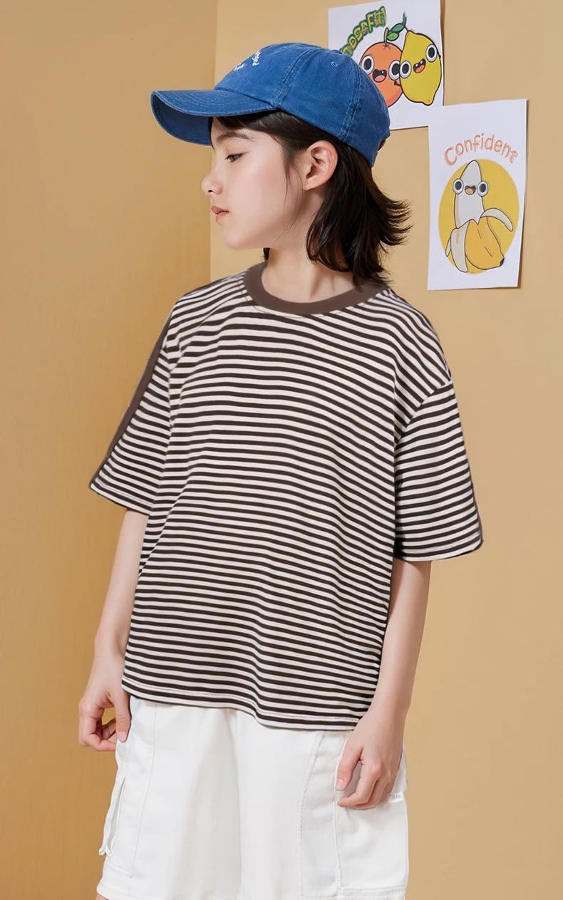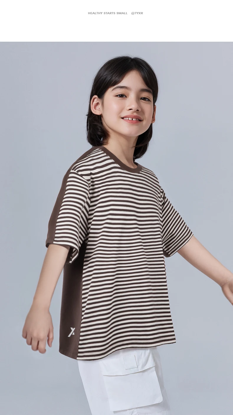 2025 New Summer Boys Striped Cotton T-Shirt Loose Fit Round Neck Short Sleeve Tee for Kids Ages 3-14 Years