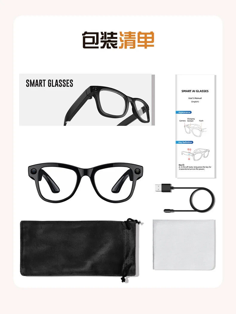 2025 Ultra HD Shooting Smart Camera Glasses Smart Recognition AI Voice Assistant Video Recording Translation AI Camera Glasses