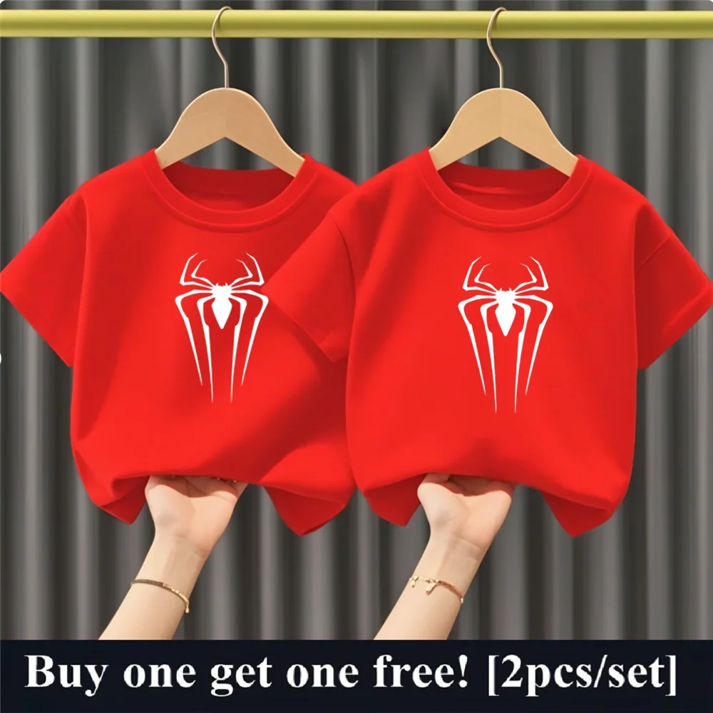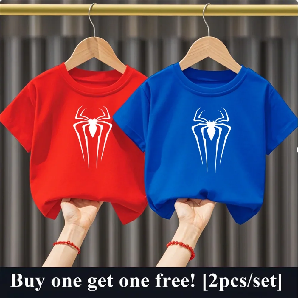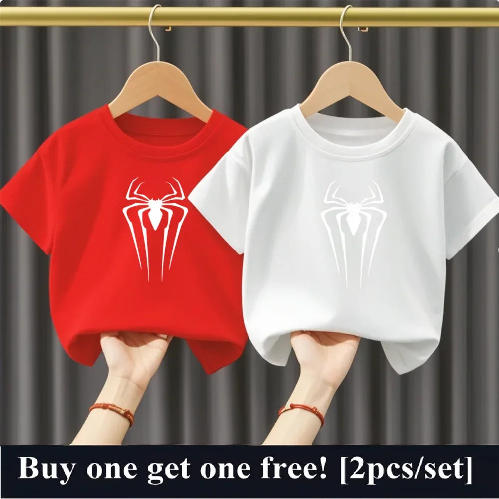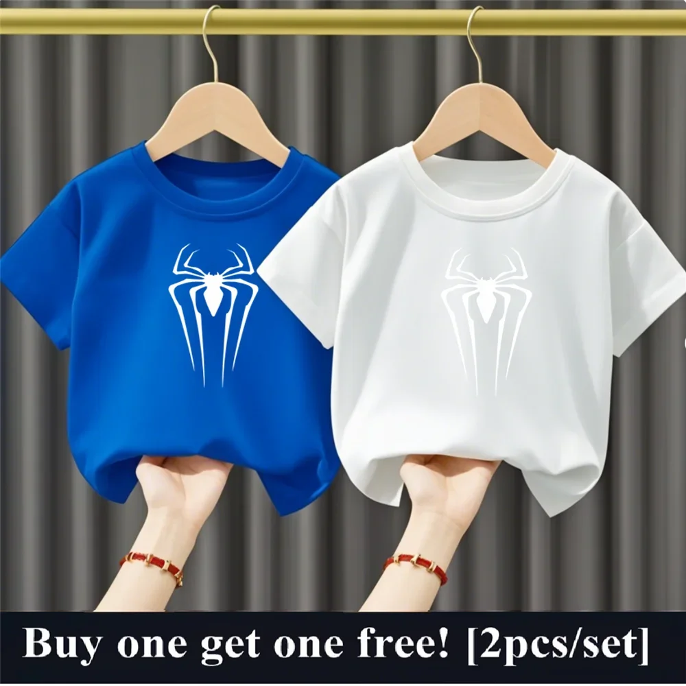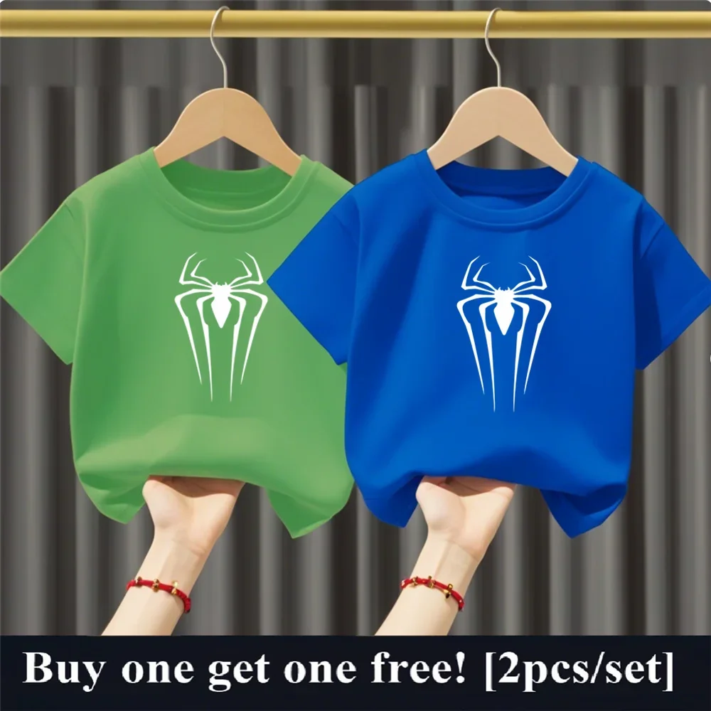2pcs/Set Summer Boys Cotton T Shirt Two Piece Set Cartoon Spider Kids Casual Outfits Child Best Friend Short Sleeved Party Tops