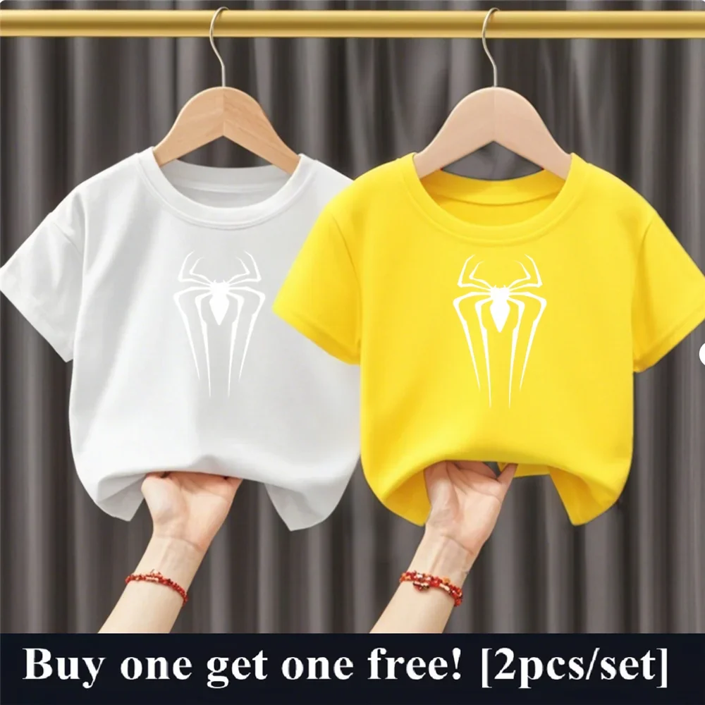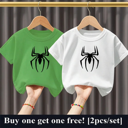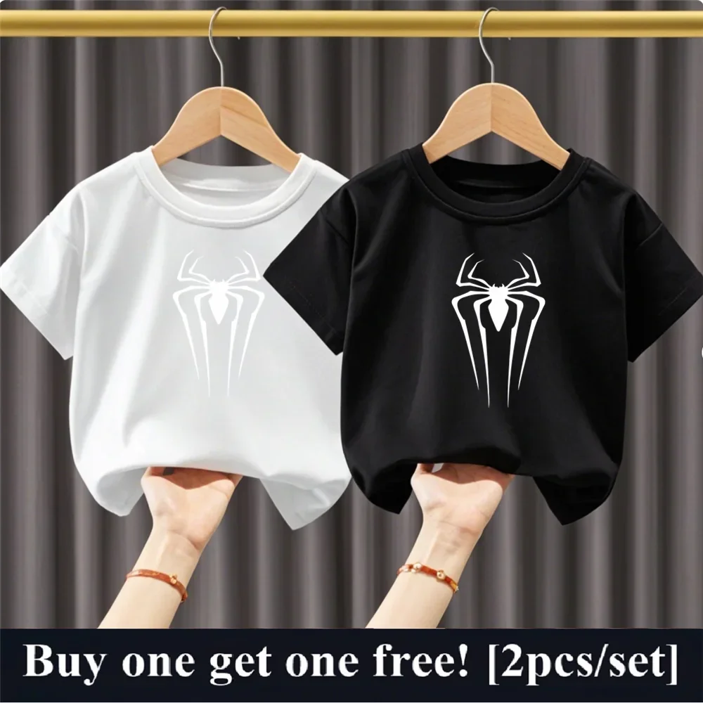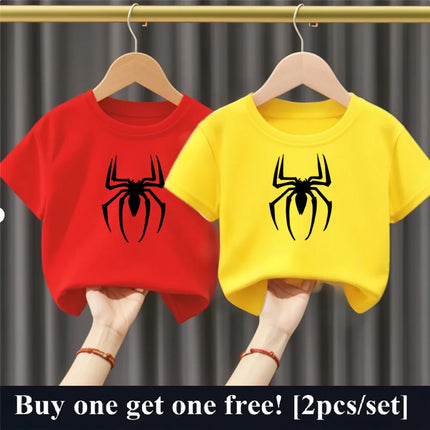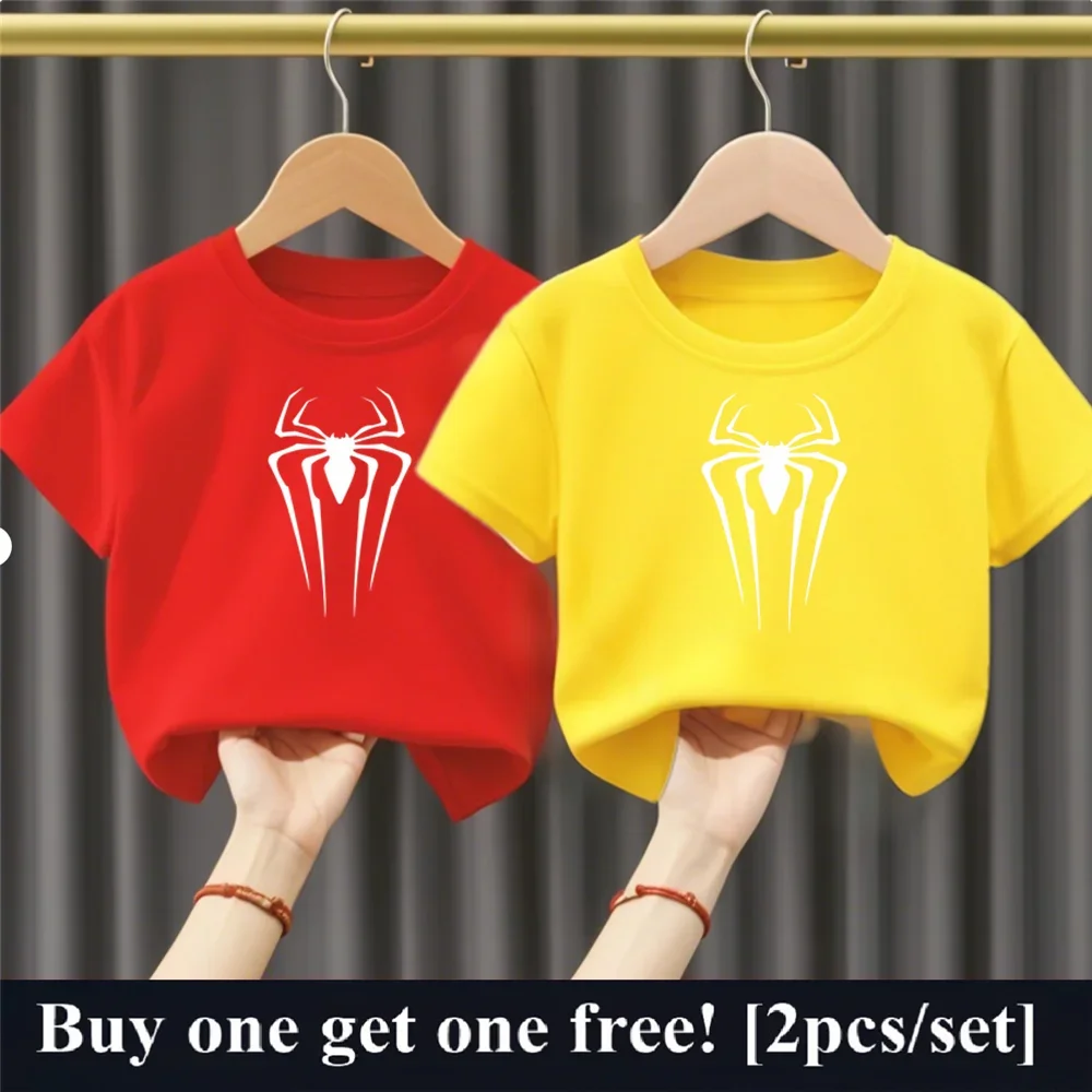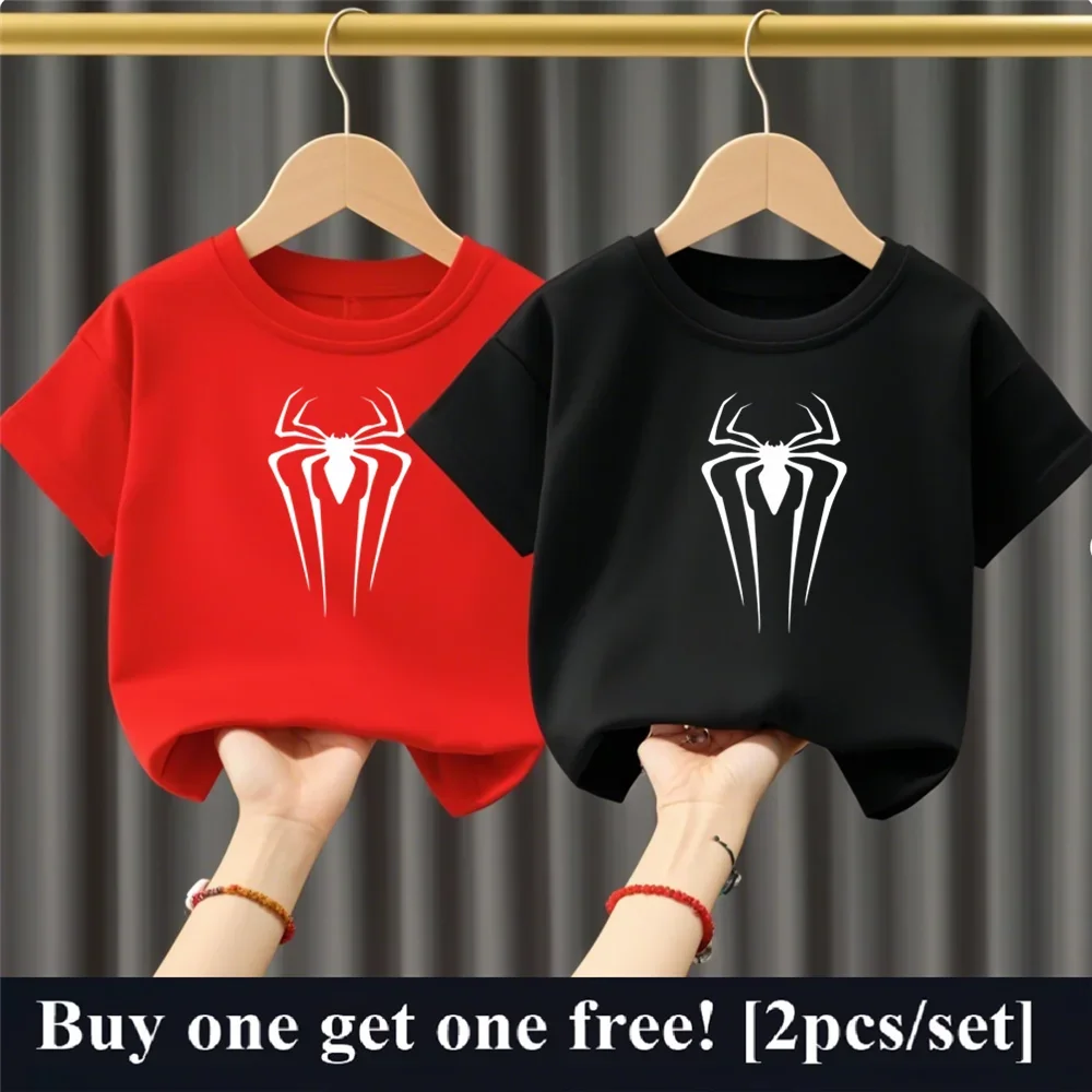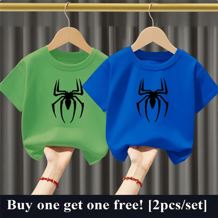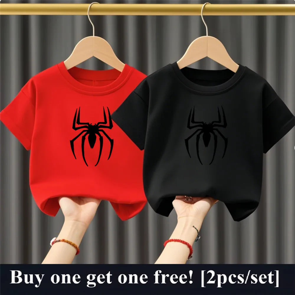 2pcs/Set Summer Boys Cotton T Shirt Two Piece Set Cartoon Spider Kids Casual Outfits Child Best Friend Short Sleeved Party Tops
