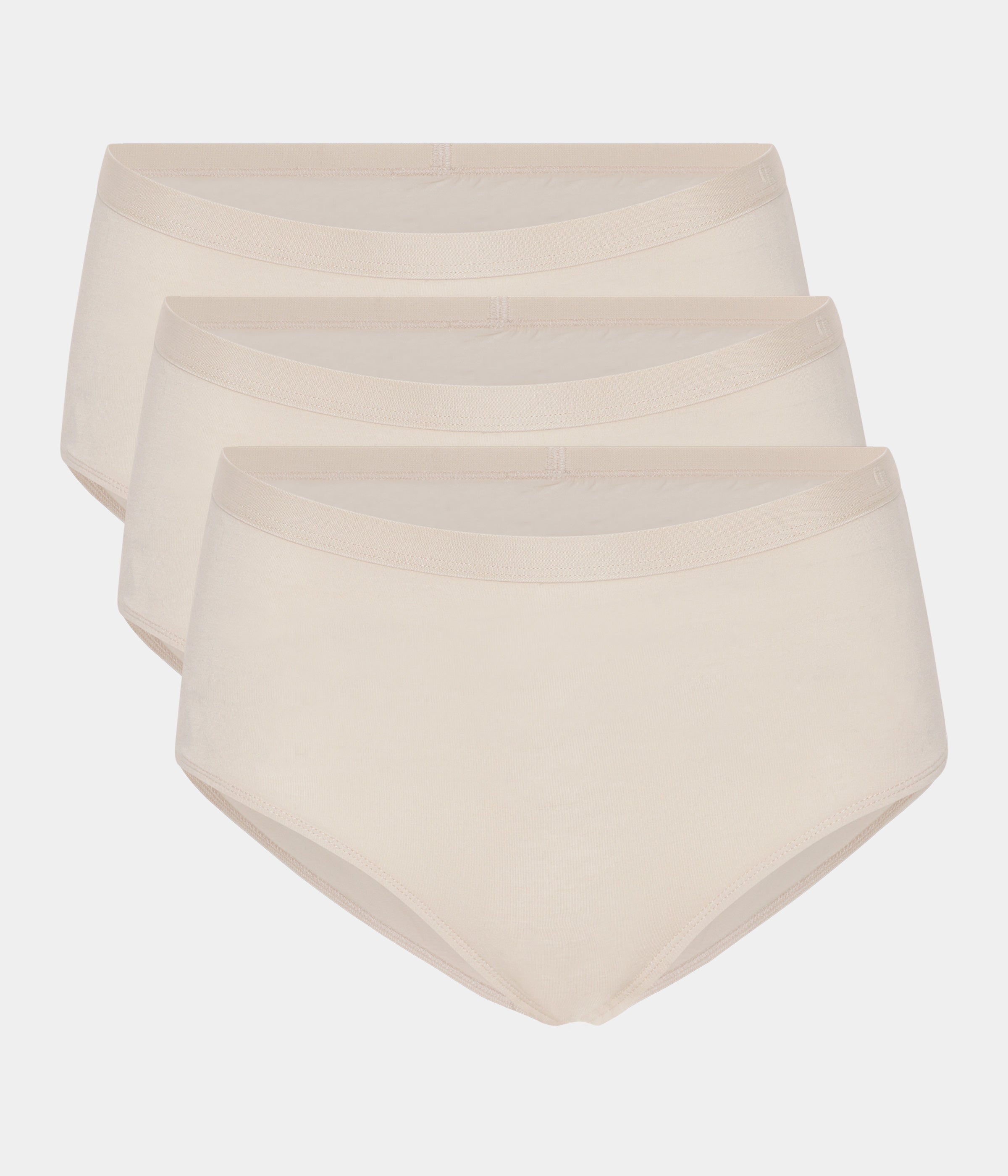 Disse creme maxi trusser har en høj talje og god dækning af ballerne. Bambusviskose er, udover at være super blødt, bl.a. fugttransporterende og åndbart, hvilket gør materialet perfekt til trusser.