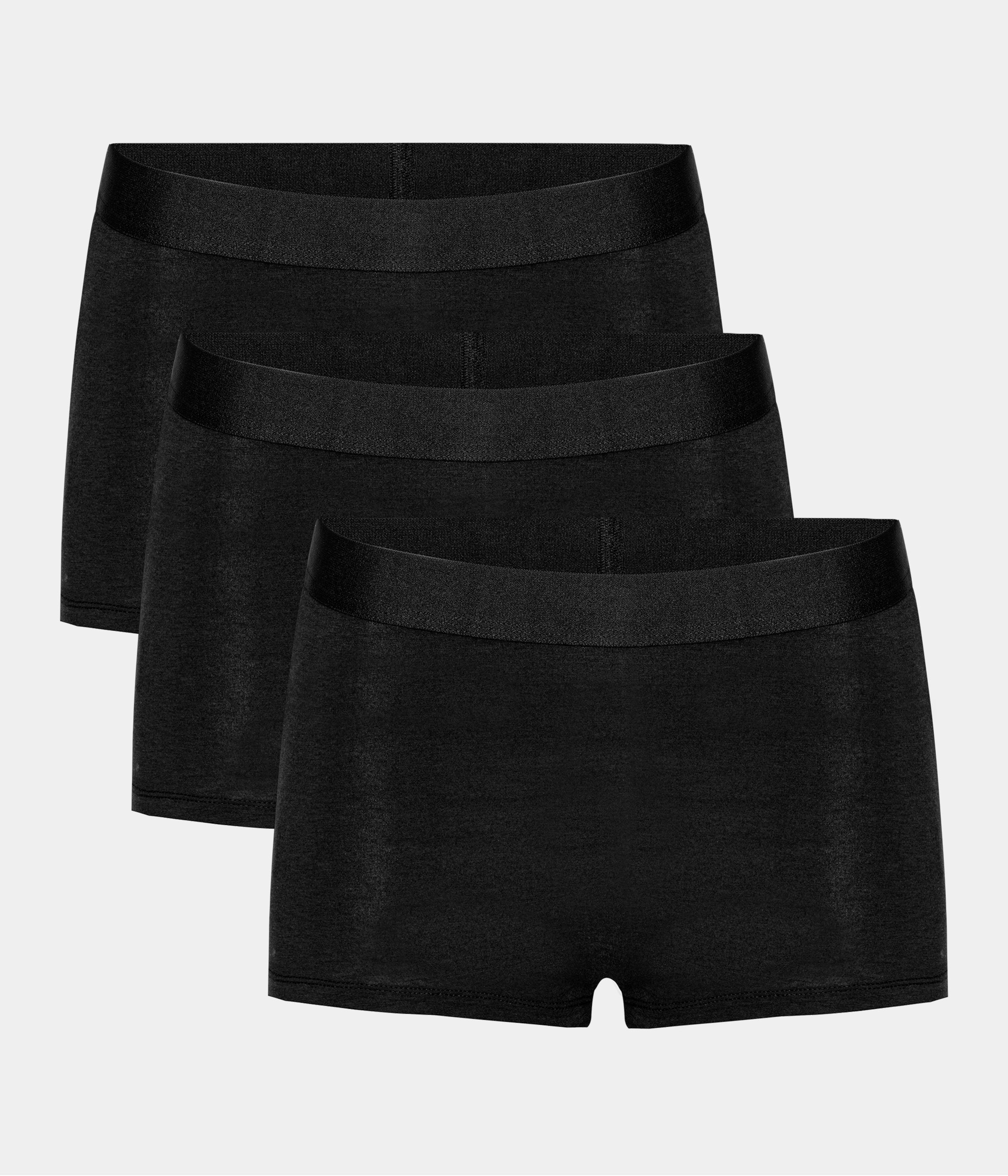 Disse sorte hotpants har sidesømme, en bred påsyet elastik i linningen og dækker hele ballen.Bambusviskose er, udover at være super blødt, bl.a. fugttransporterende... Read more