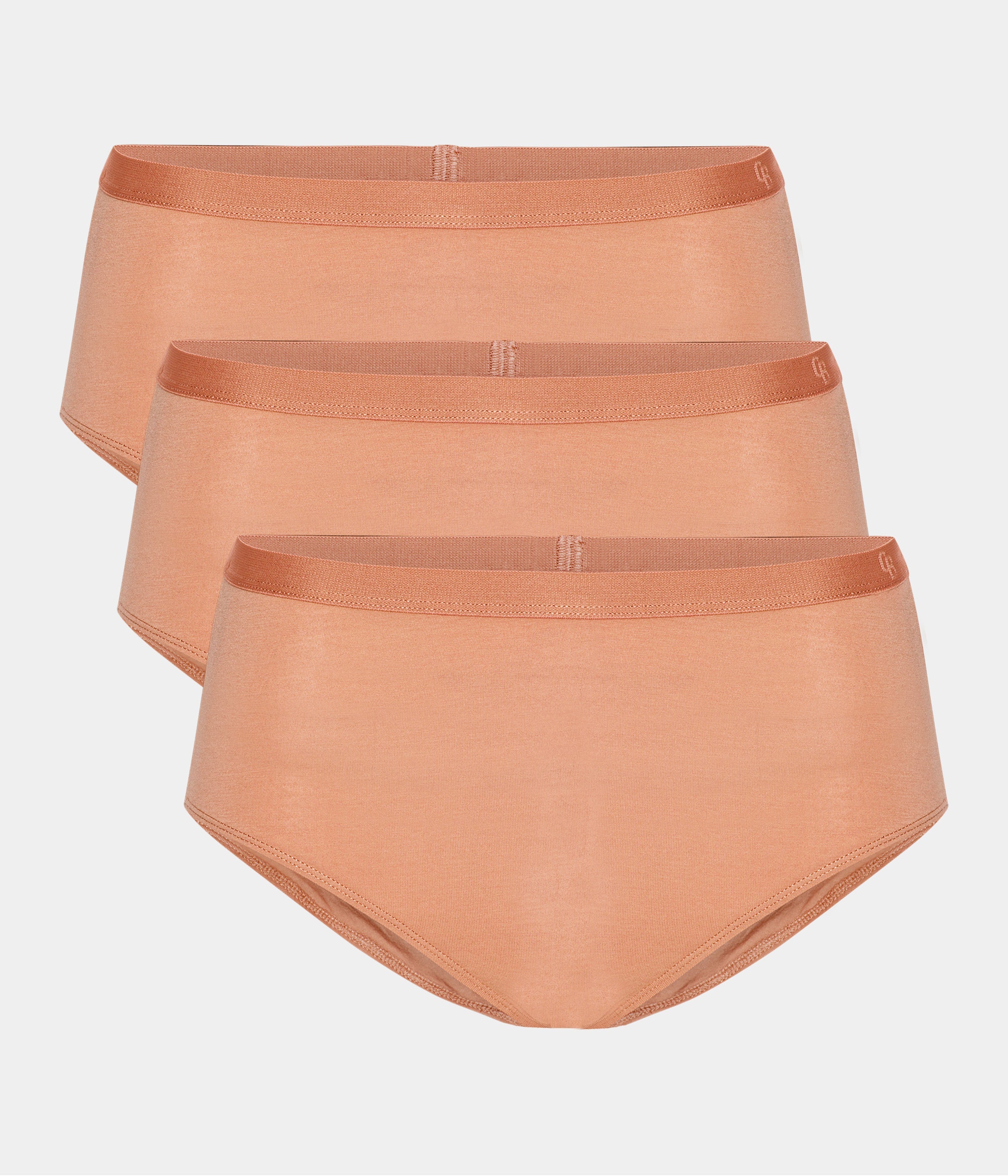 Disse tan nude maxi trusser har en høj talje og god dækning af ballerne. Bambusviskose er, udover at være super blødt, bl.a. fugttransporterende og åndbart, hvilket gør materialet perfekt til trusser.