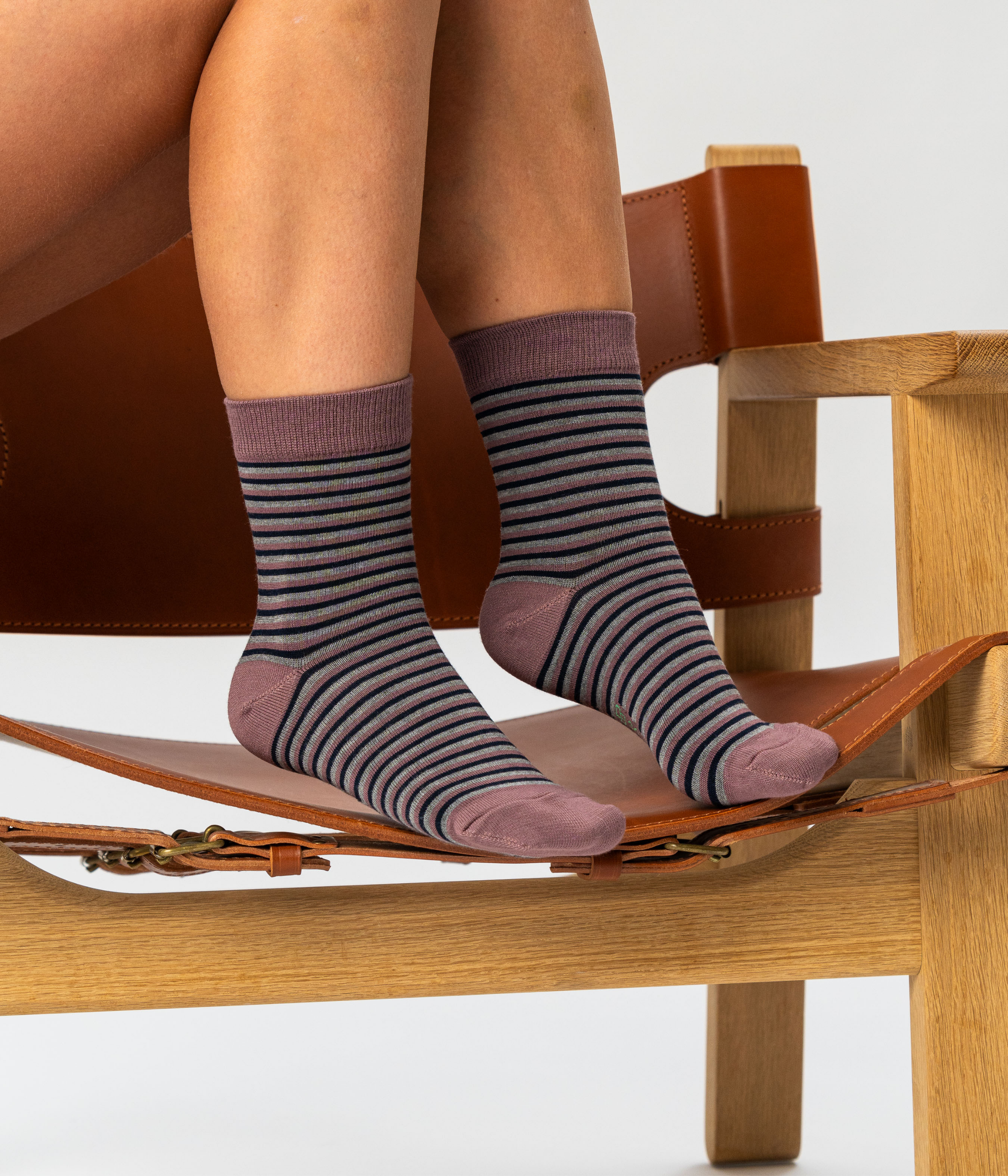 5 par bambus strømper i mauve og stribe mix (low cut)
