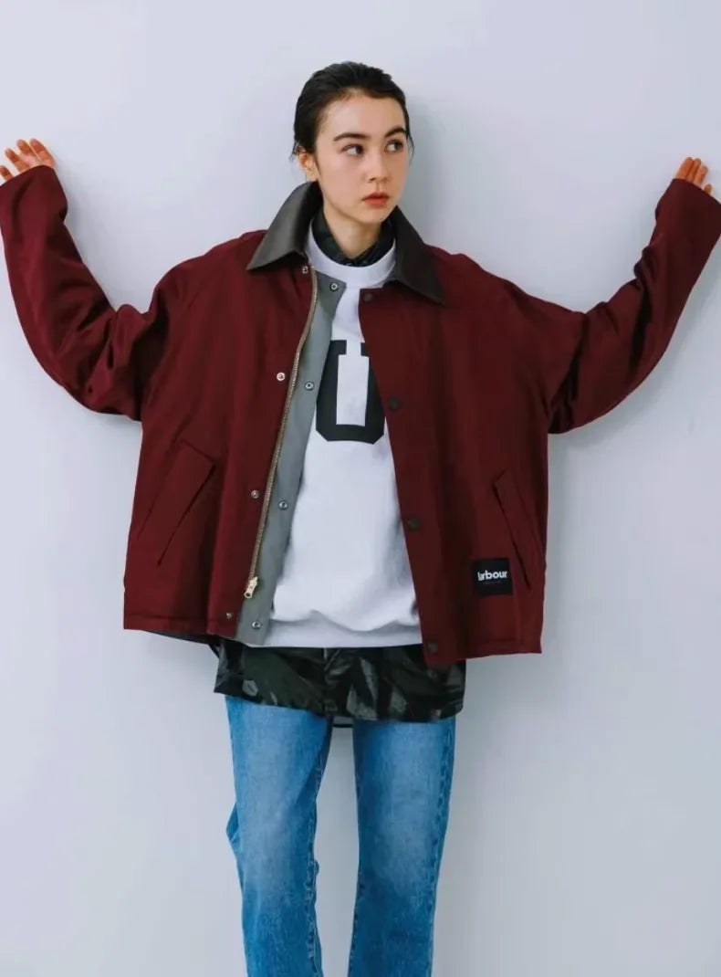 B@r ADAM ET ROPE Windproof And Waterproof Reversible Unwaxed Leather Collar Jacket Unisex