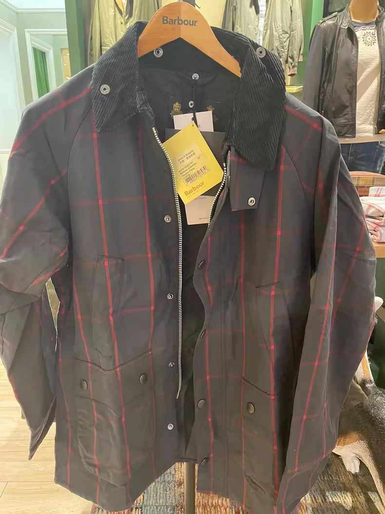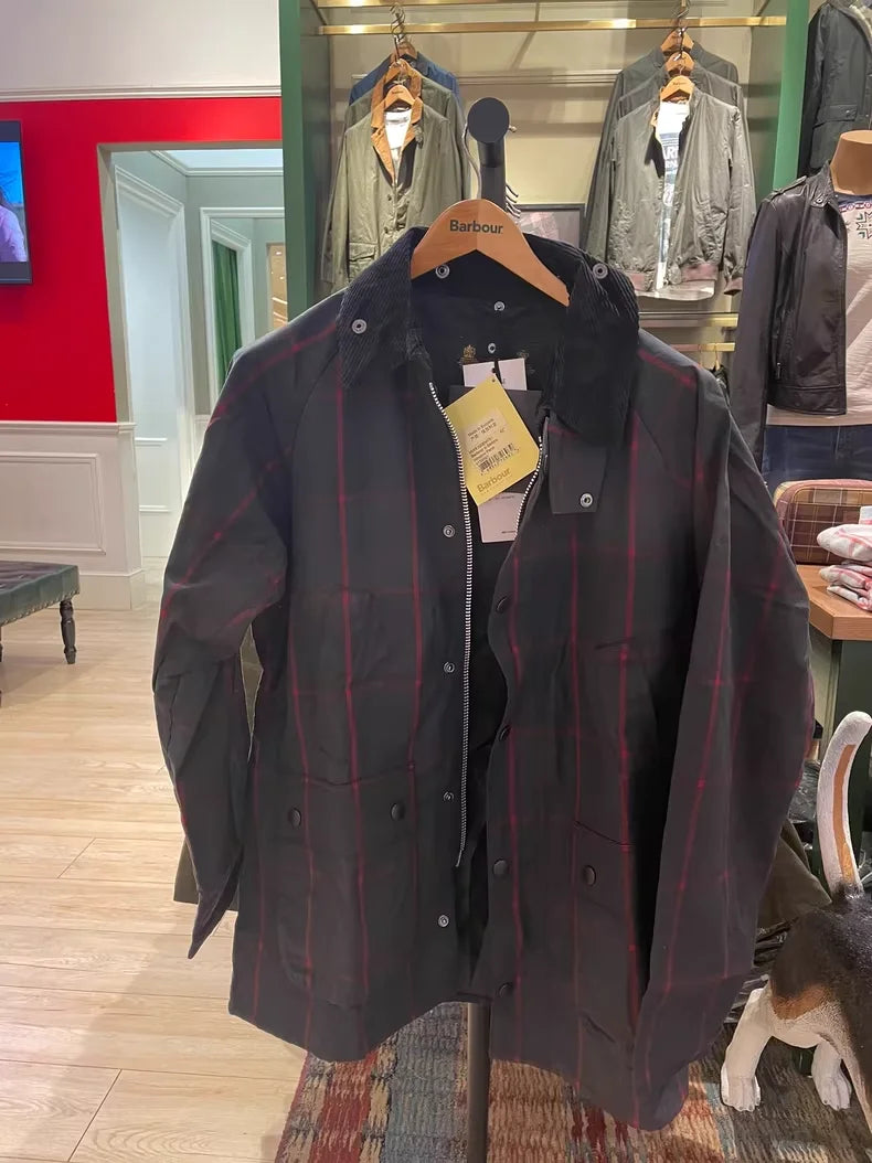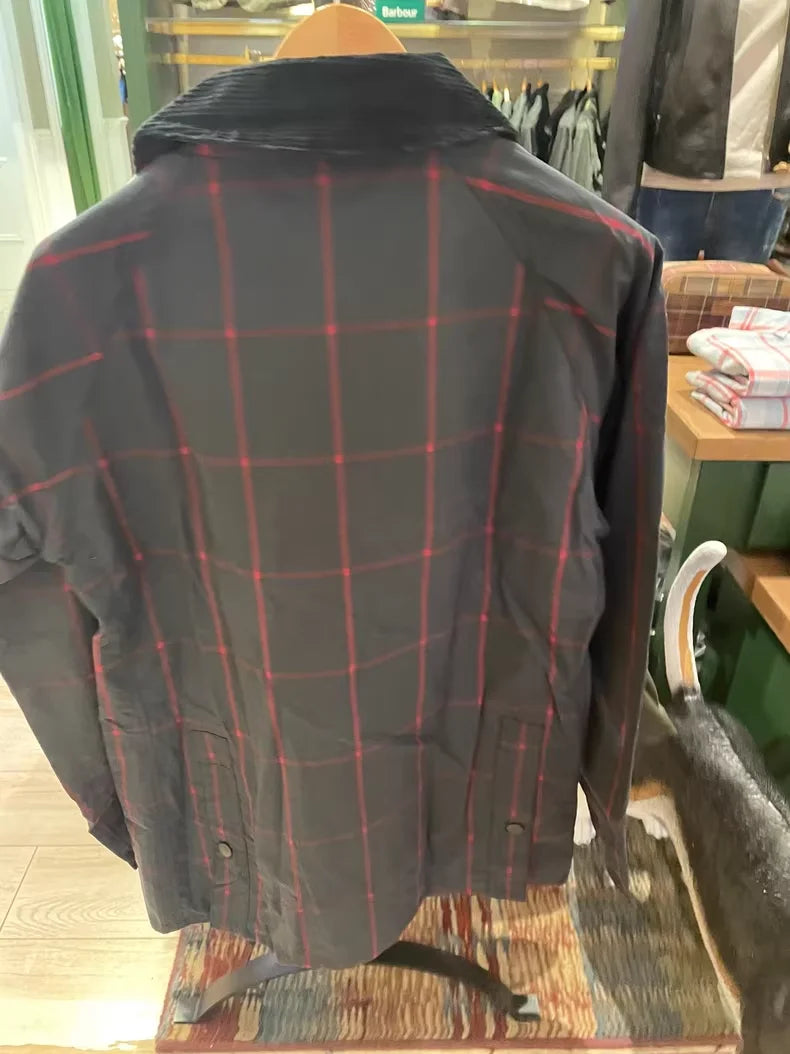 B@r Bedale Wax Coat Plaid Blue Triple Crown Slim Fit