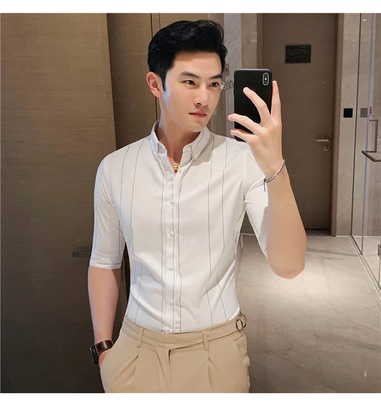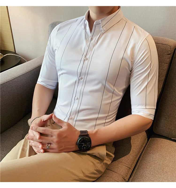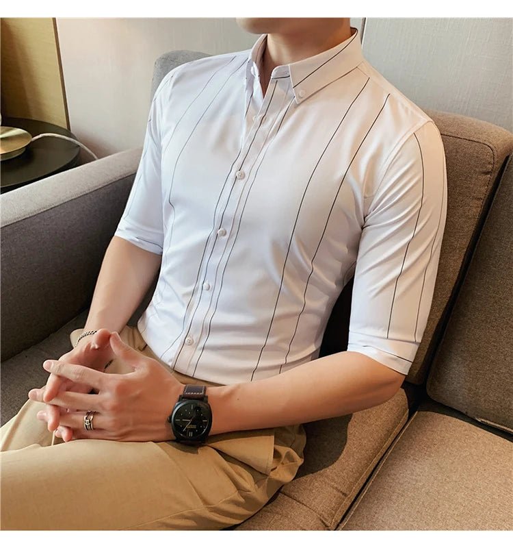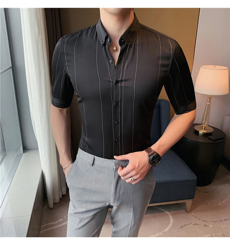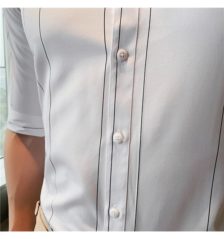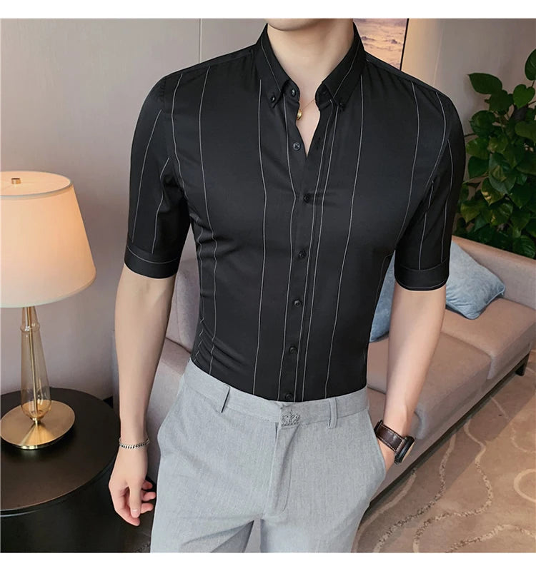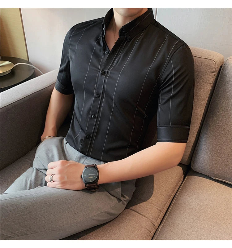 Black/White Summer Half Sleeve Striped Shirts Men 2023 Fashion Business Slim Fit Casual Blouse Social Tuxedos Plus Size 5XL-M