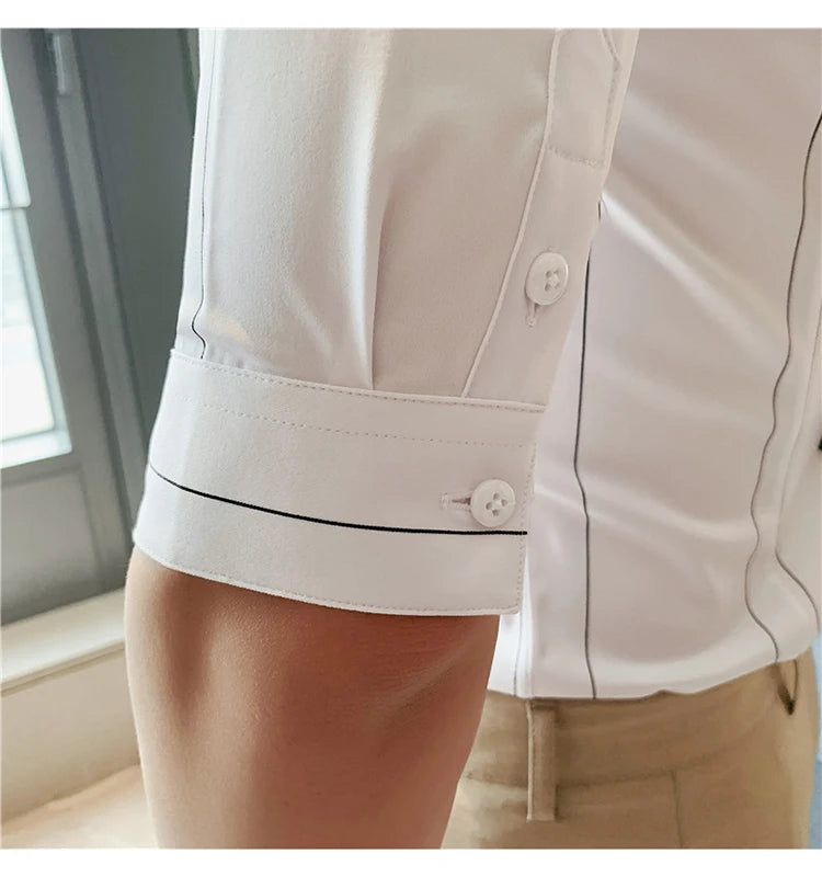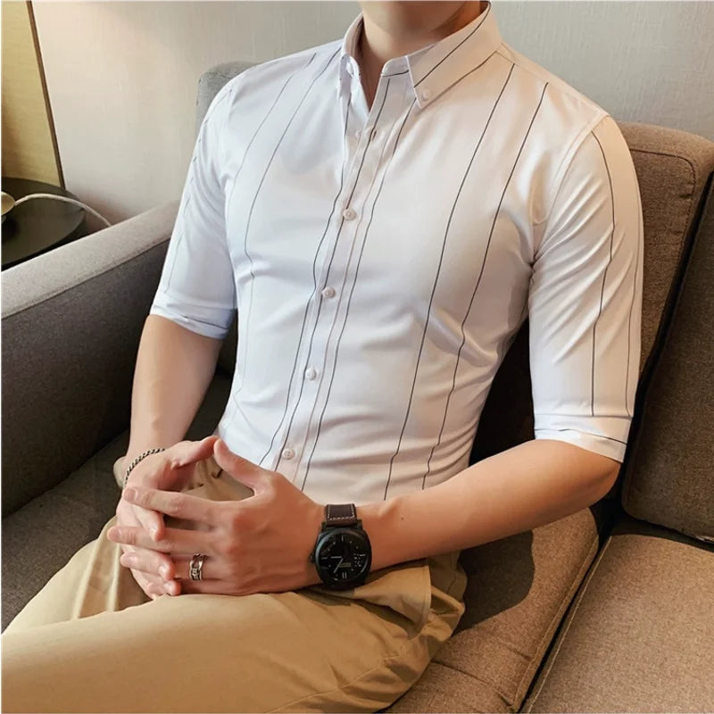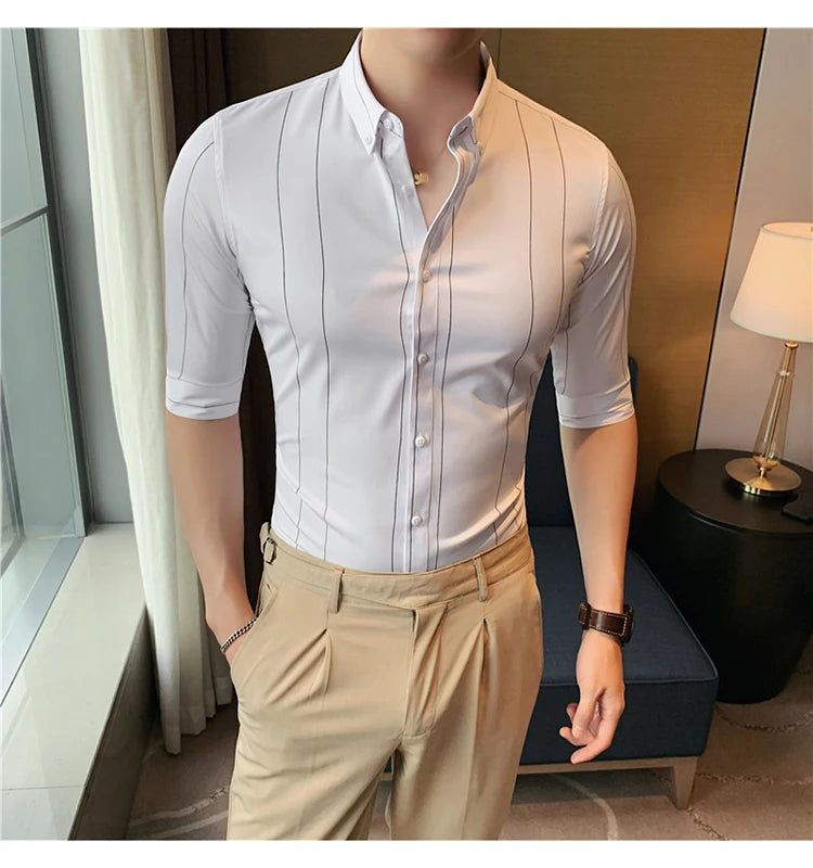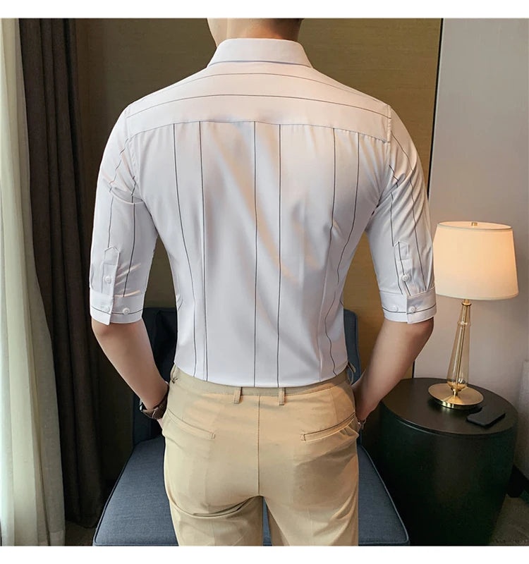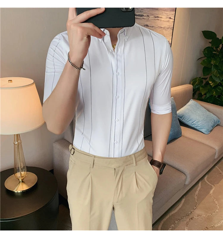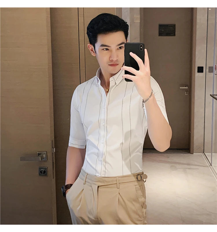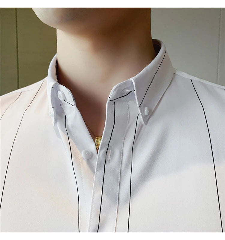 Black/White Summer Half Sleeve Striped Shirts Men 2023 Fashion Business Slim Fit Casual Blouse Social Tuxedos Plus Size 5XL-M