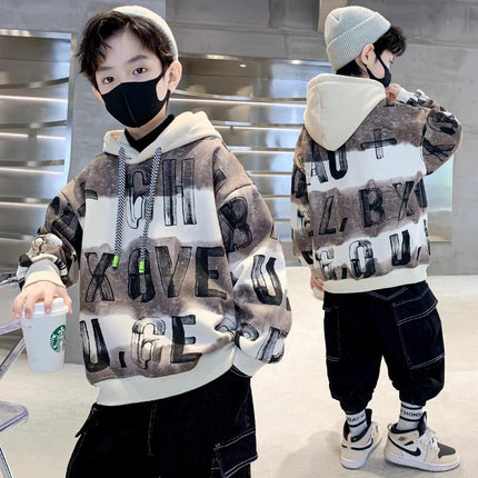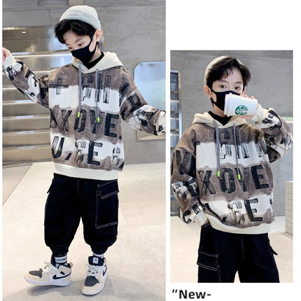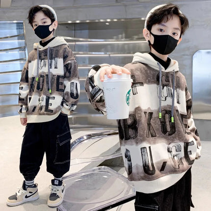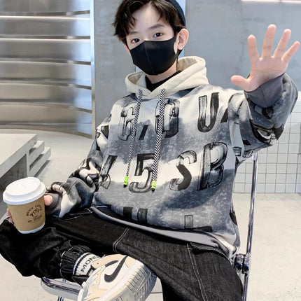 Boys Sweatshirts 2025 Hoodie Autumn Hip Hop Casual Long Sleeve Jackets Children's Clothes Kids Loose Tops Teen 8 10 12 14 Year