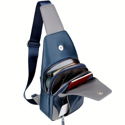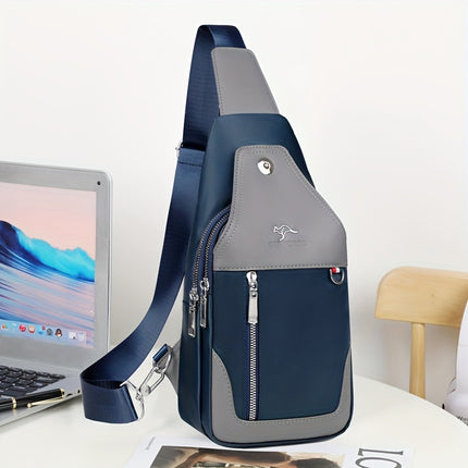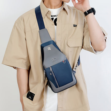 Business Casual Slant Shoulder Bag Color Blocking Chest Bag For Men, Large Capacity Motorcycling Bag, Multi-functional Crossbody Bag