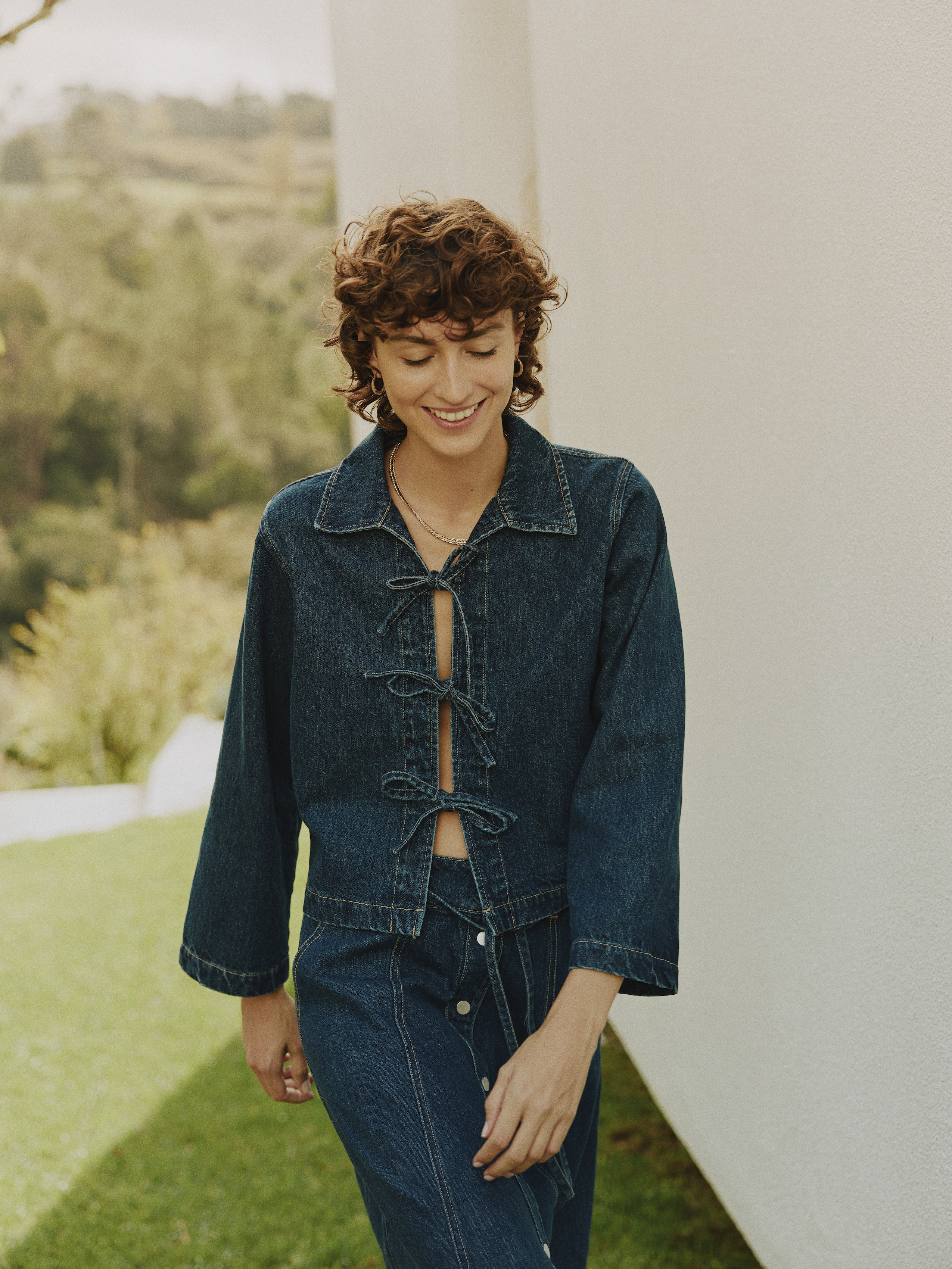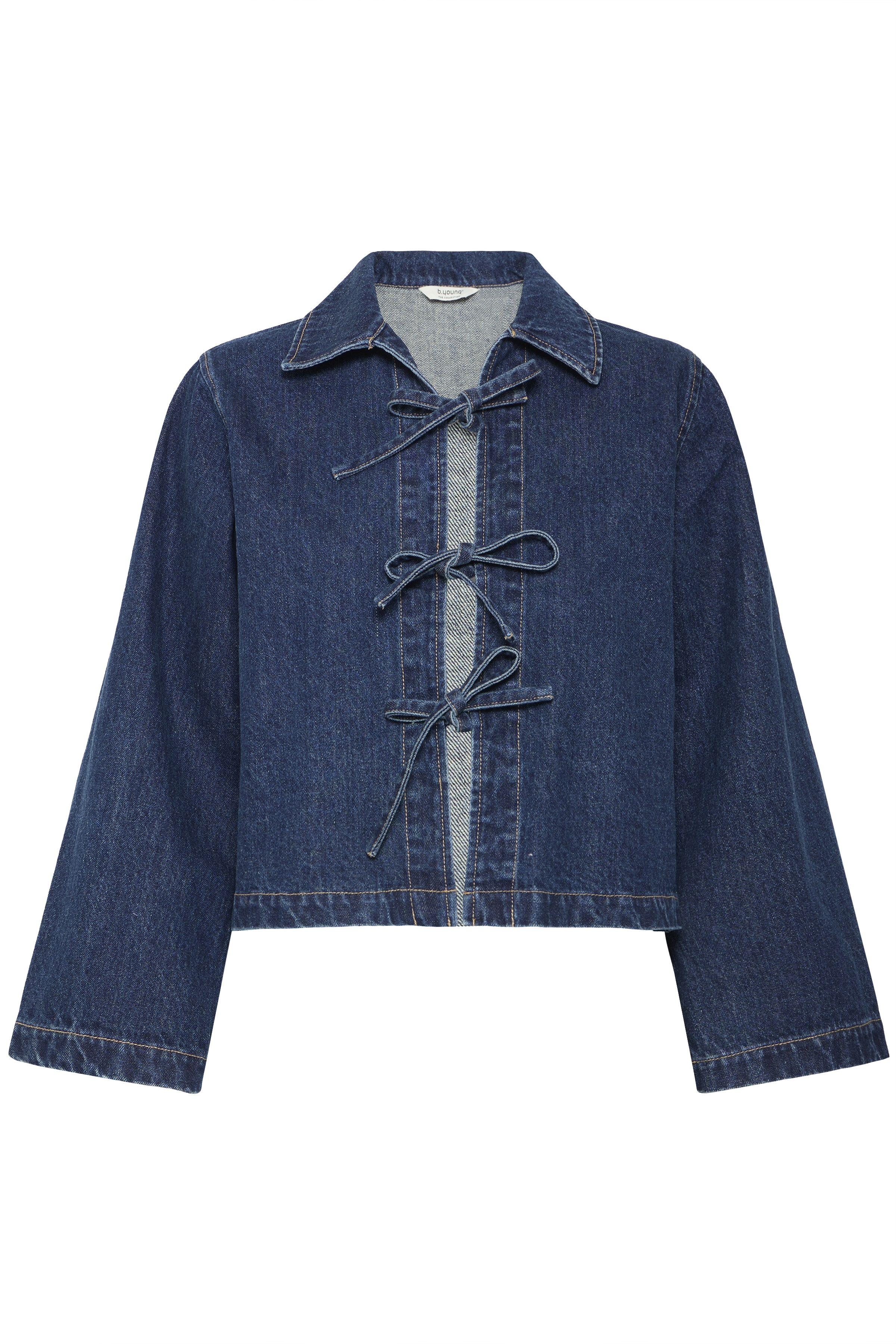 Opdag et afslappet look med denne denim skjorte/jakke i løs pasform, cropped længde, brede ærmer og iøjnefaldende bindelukninger foran. Ideel... Read more