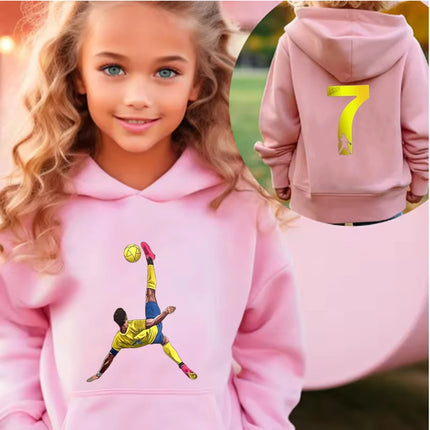 Children tops age 3-12 Boy pocket Hoodie Famous football stars Number 7 Sweatshirt yellow coat Boy Girls red spring Clothing