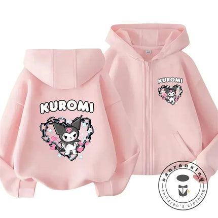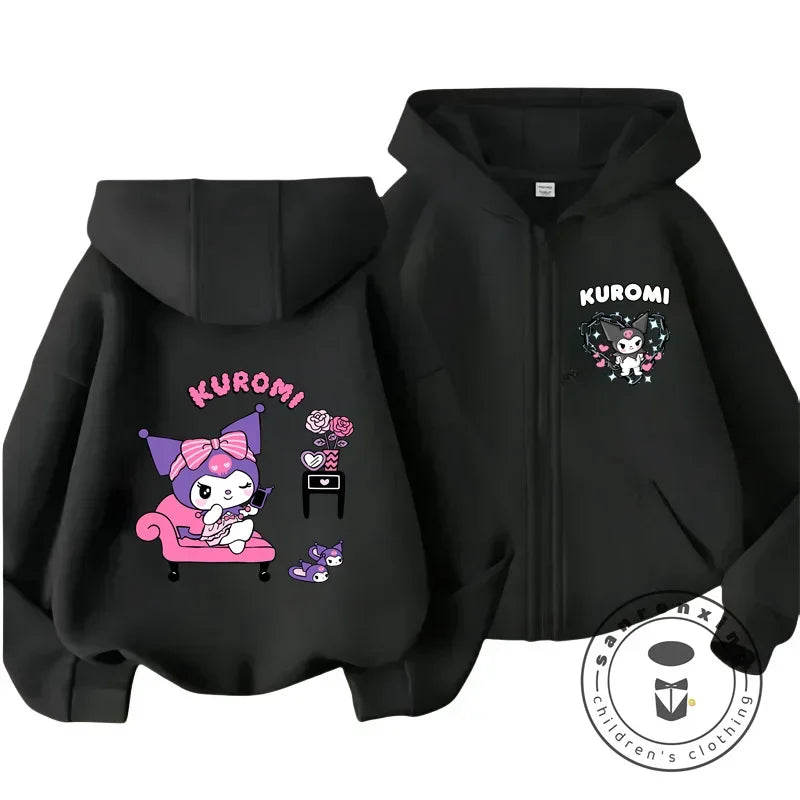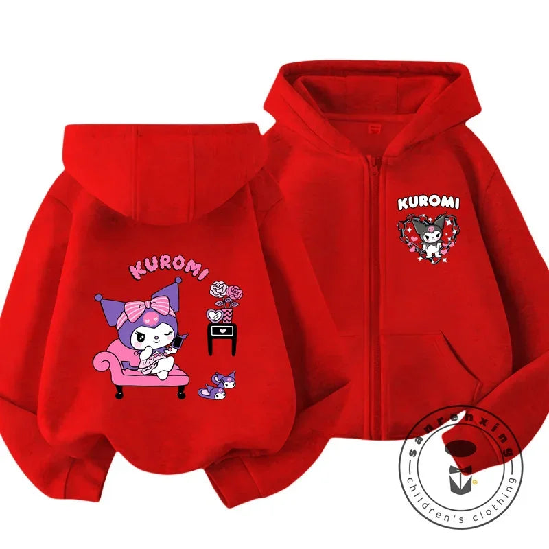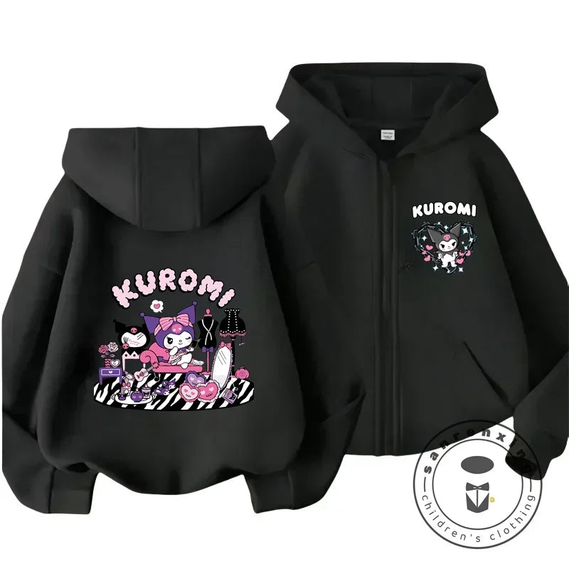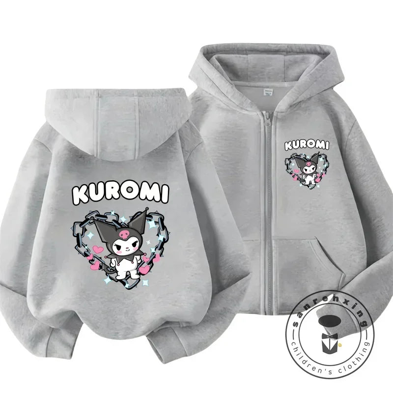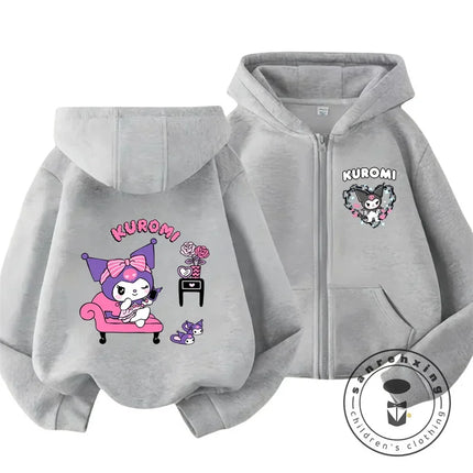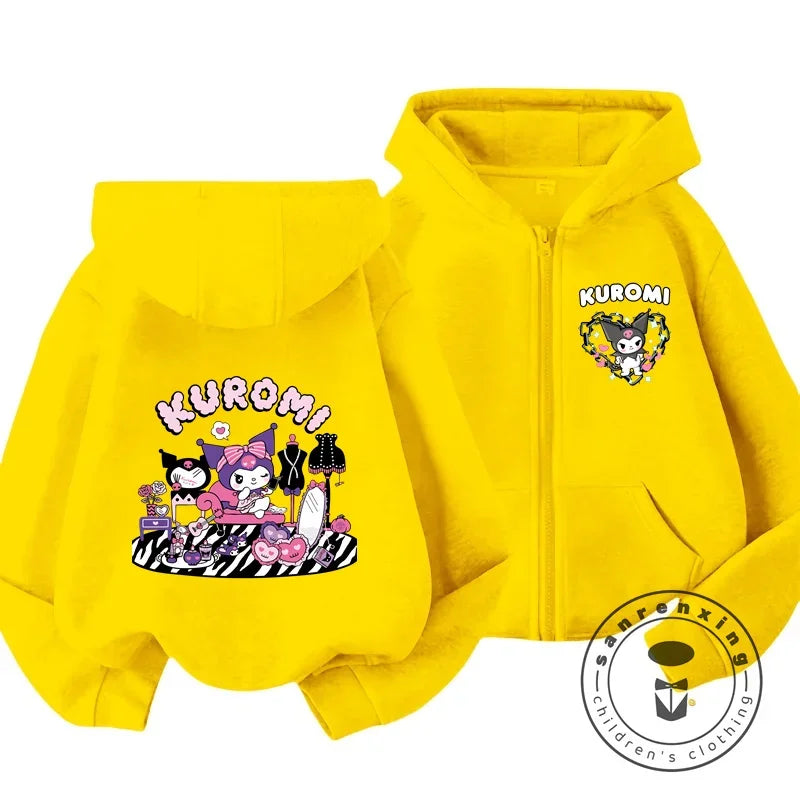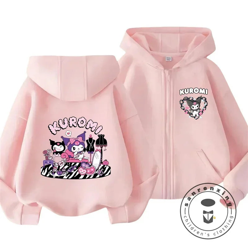 Children's Hoodies Child Sweatshirt Girls Cute Cartoon Hello Kitty Kuromi and Friend Sanrio Animal Printed Kids Zipper Clothes