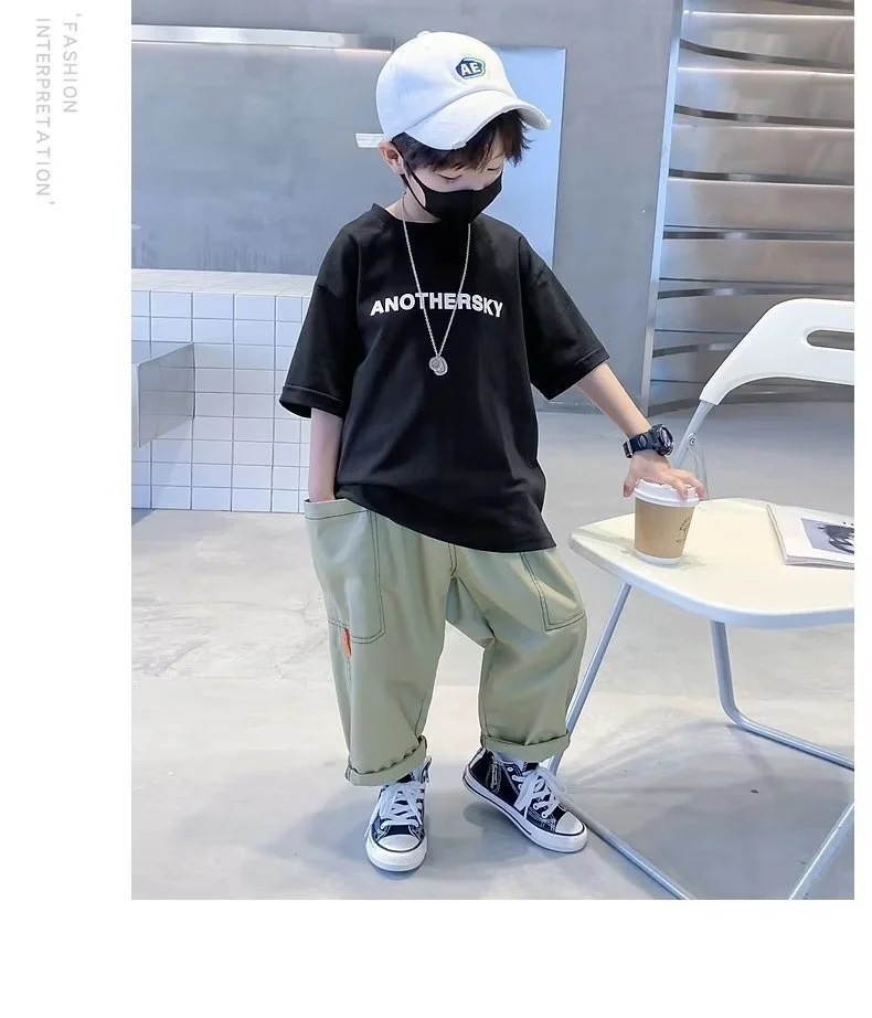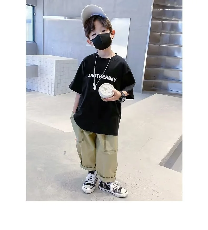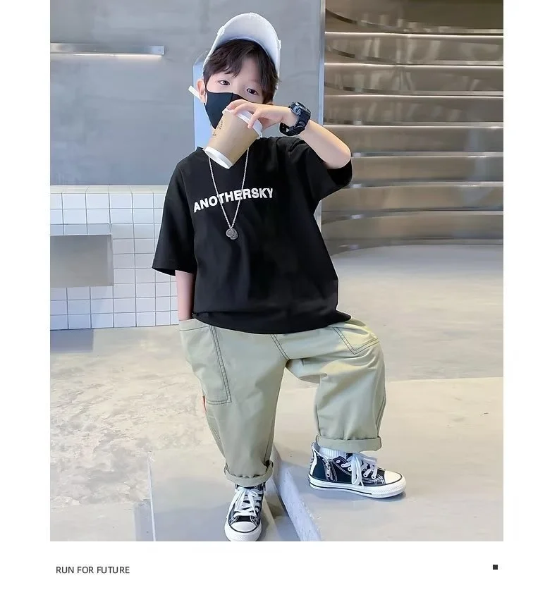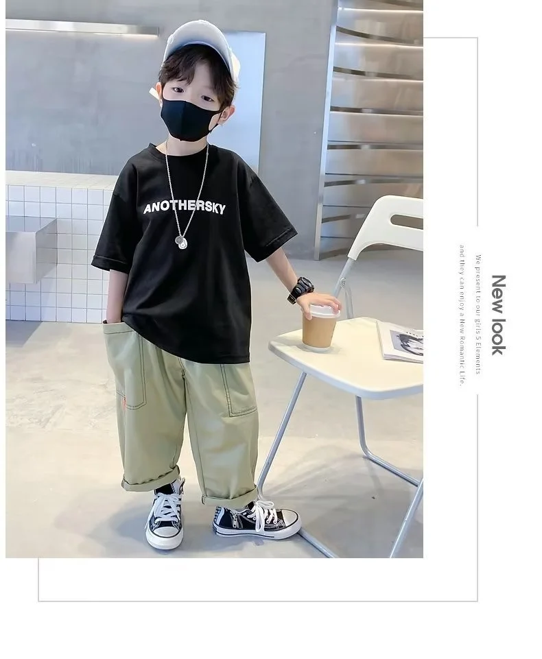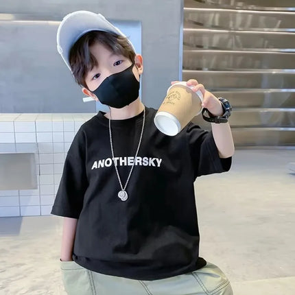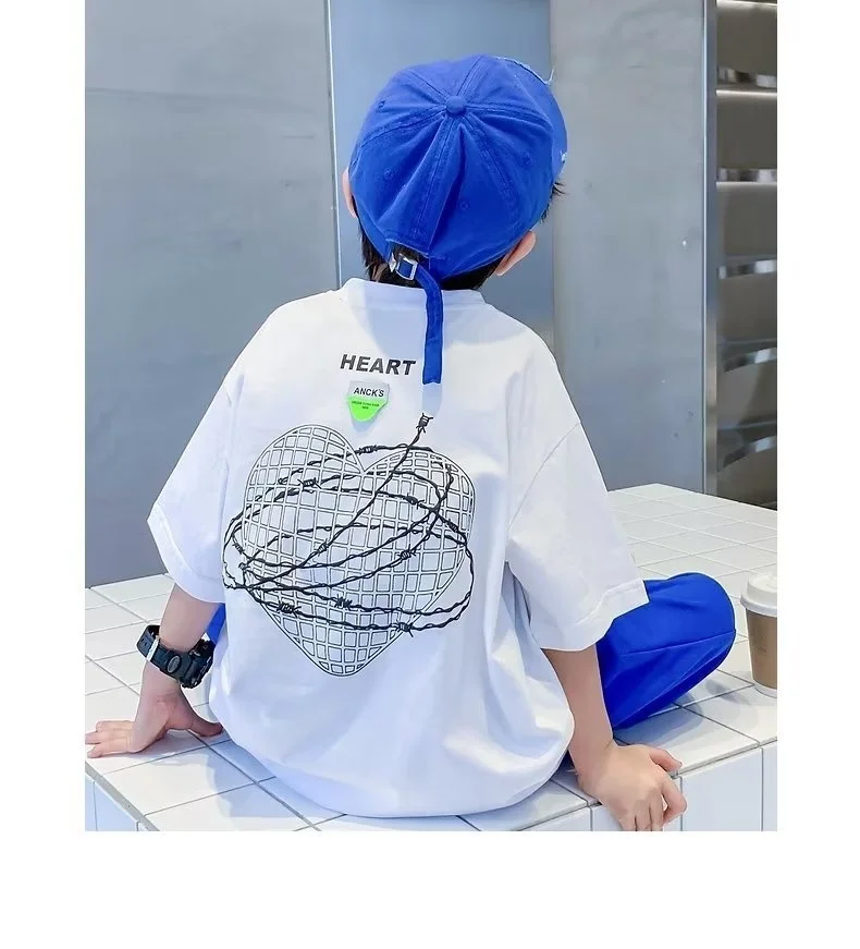 Cotton Children's T-shirt Summer New Korean Version Of The Boy's Short-sleeved T-shirt In The Big Boy's Five-and-a-half Sleeves