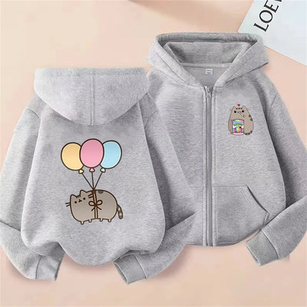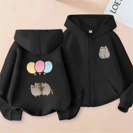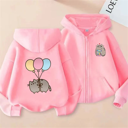 Cute Cat Pink Children's Hoodie tops Suitable age 3-12 Girls Sweatshirt coat Autumn Winter fashion Zipper style Hood Clothing