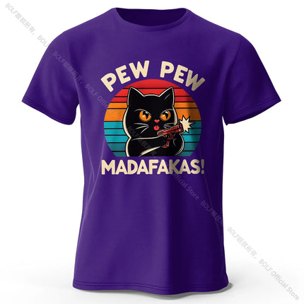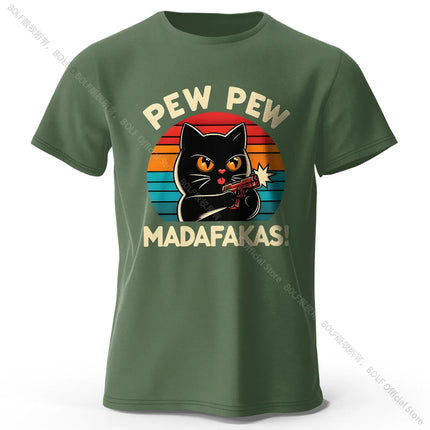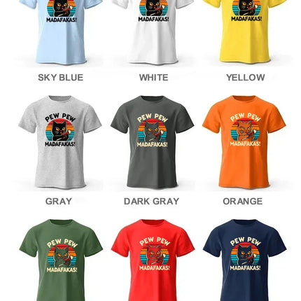 Cute Hand-Drawn Cat Doodle Print 100% Cotton T-Shirt, Ultra Soft Round Neck Short Sleeve Tee for Men & Women