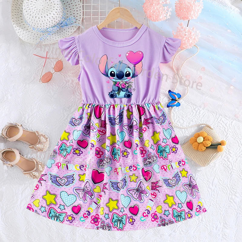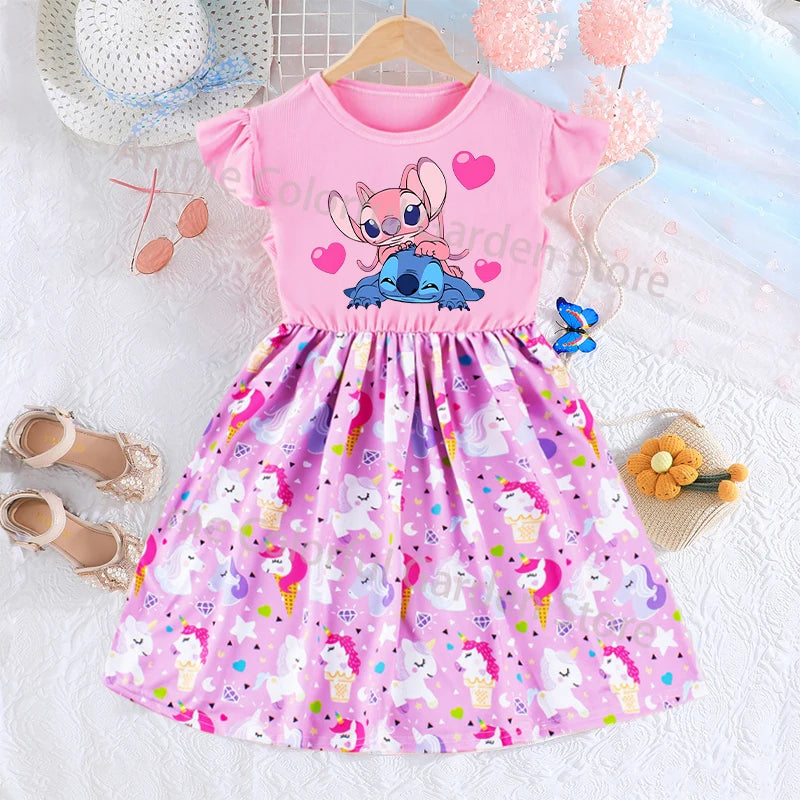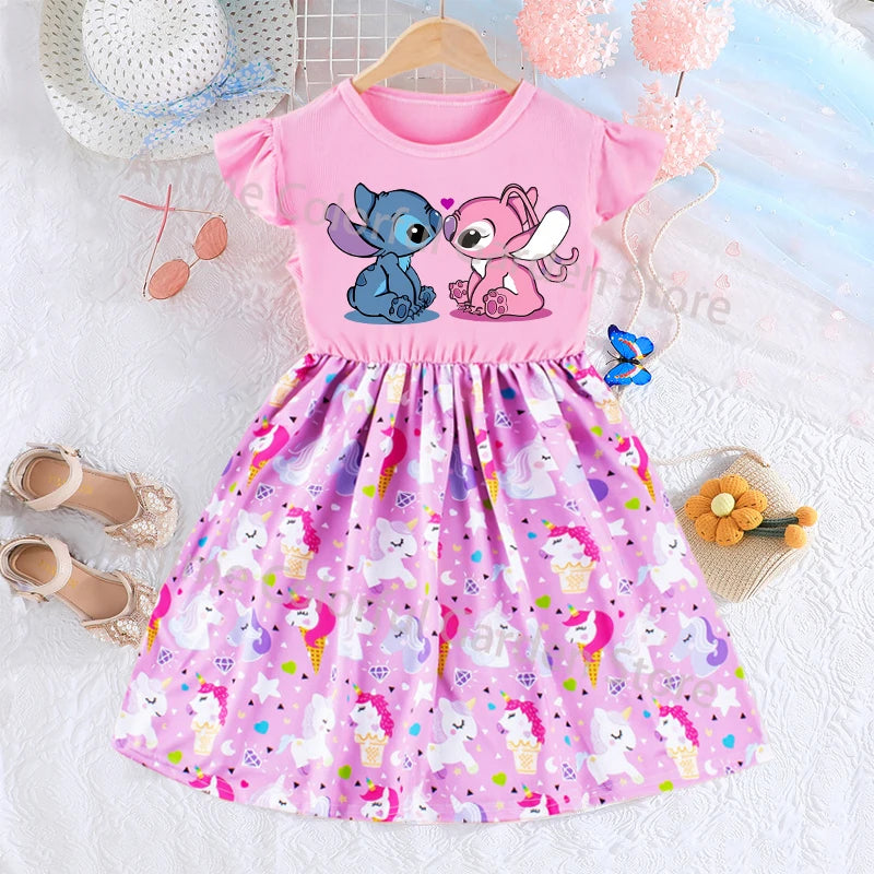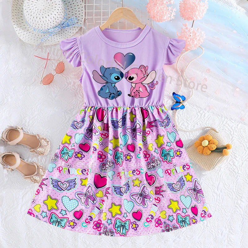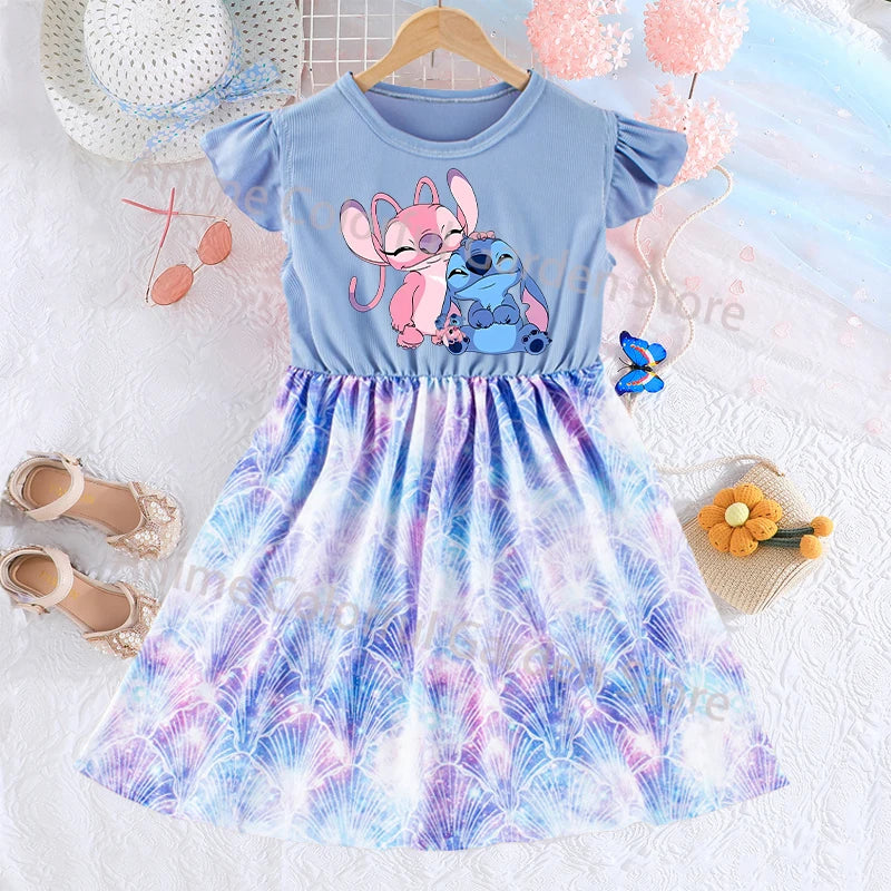 Disney Lilo & Stitch Fashion Dress for Girls Anime Cartoon Cute Skirt Children Summer Sweet Cute Dresses Kids Birthday Gifts